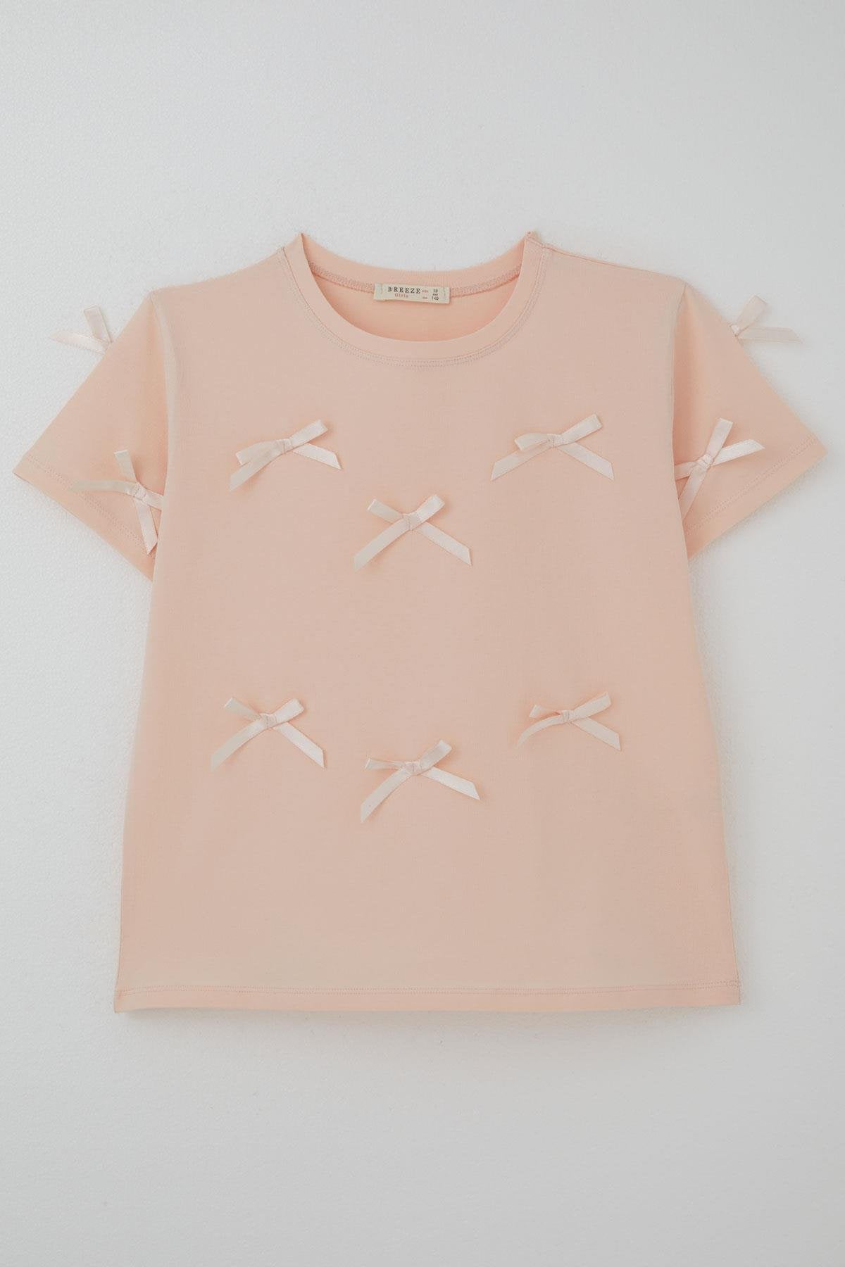BRE Breeze Girl's T-Shirt with Bow Accessory Detail, 94 Years, Powder - Leonberg