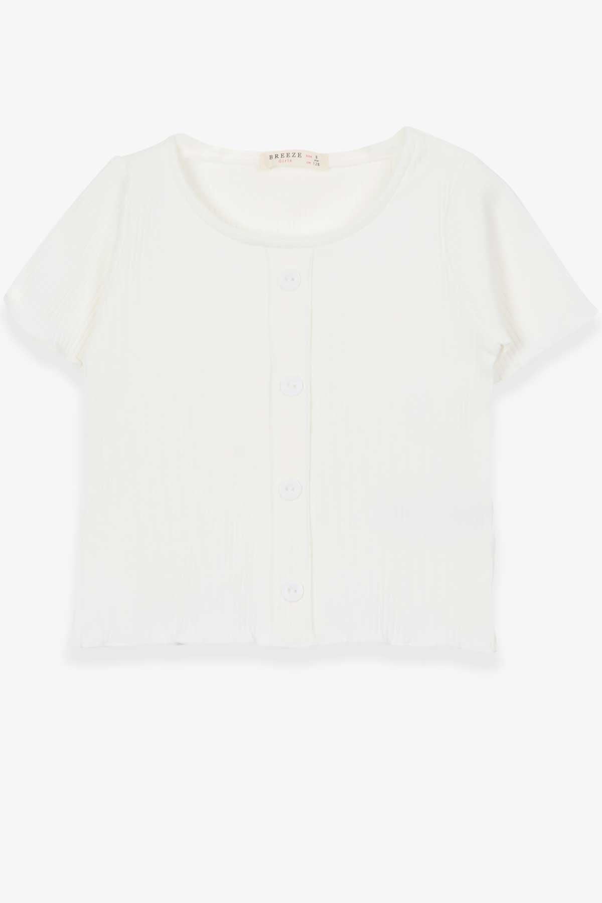 BRE Breeze Girl's T-shirt with Button Accessories, 84 Years, Ecru - Leavenworth