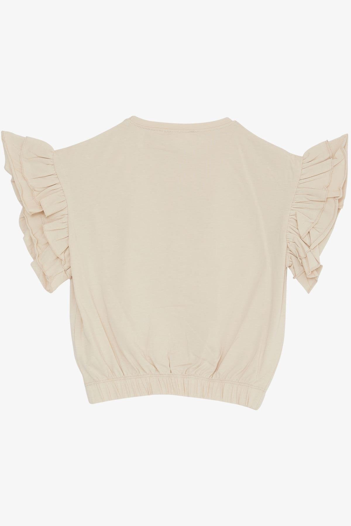BRE Breeze Girl's T-shirt with Flower Print Ruffled Sleeves, 94 Years, Beige - Sarasota