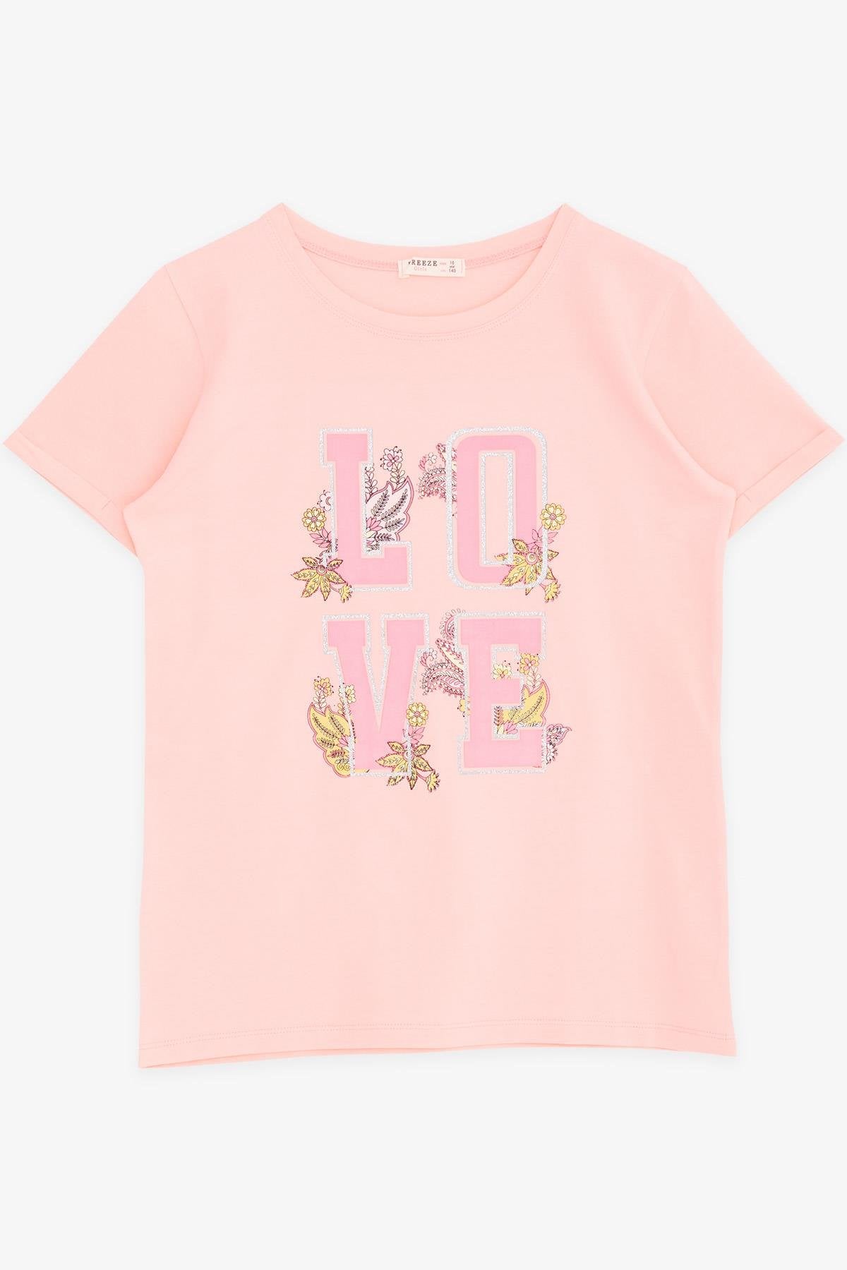 BRE Breeze Girl's T-shirt with Glittery Text Flower Print 106 Years, Salmon - Wilmington