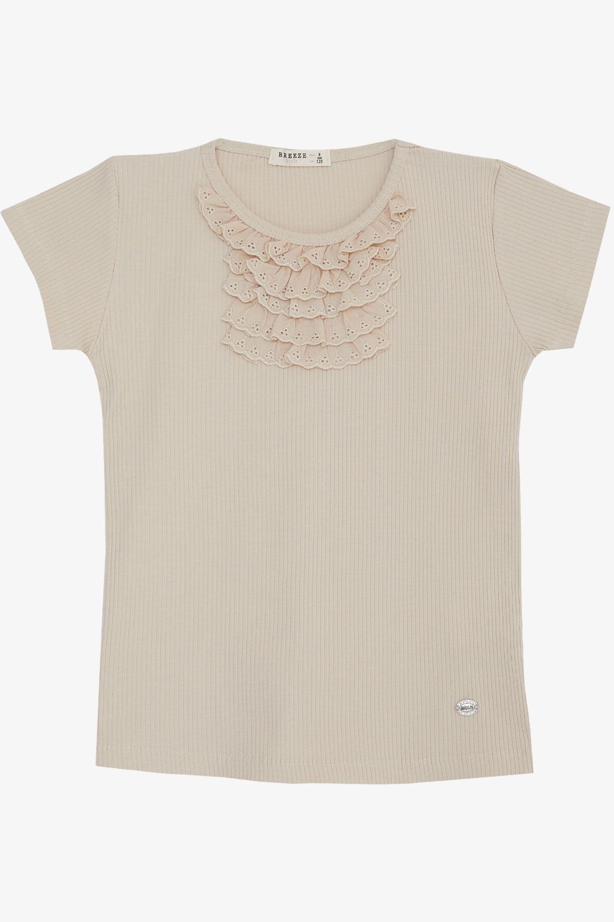 BRE Breeze Girl's T-shirt with Lace Trim and Frills, 4-8 Years, Beige - Pozzuoli
