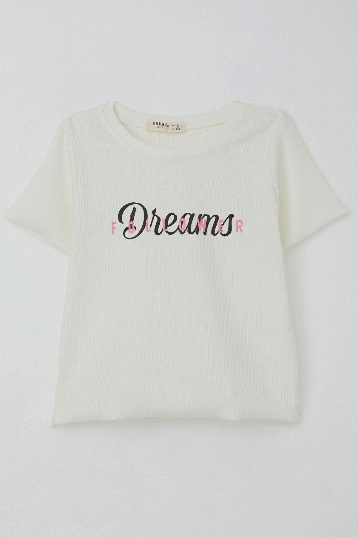 BRE Breeze Girl's T-Shirt with Printed Text, 84 Years, Ecru - Hammond