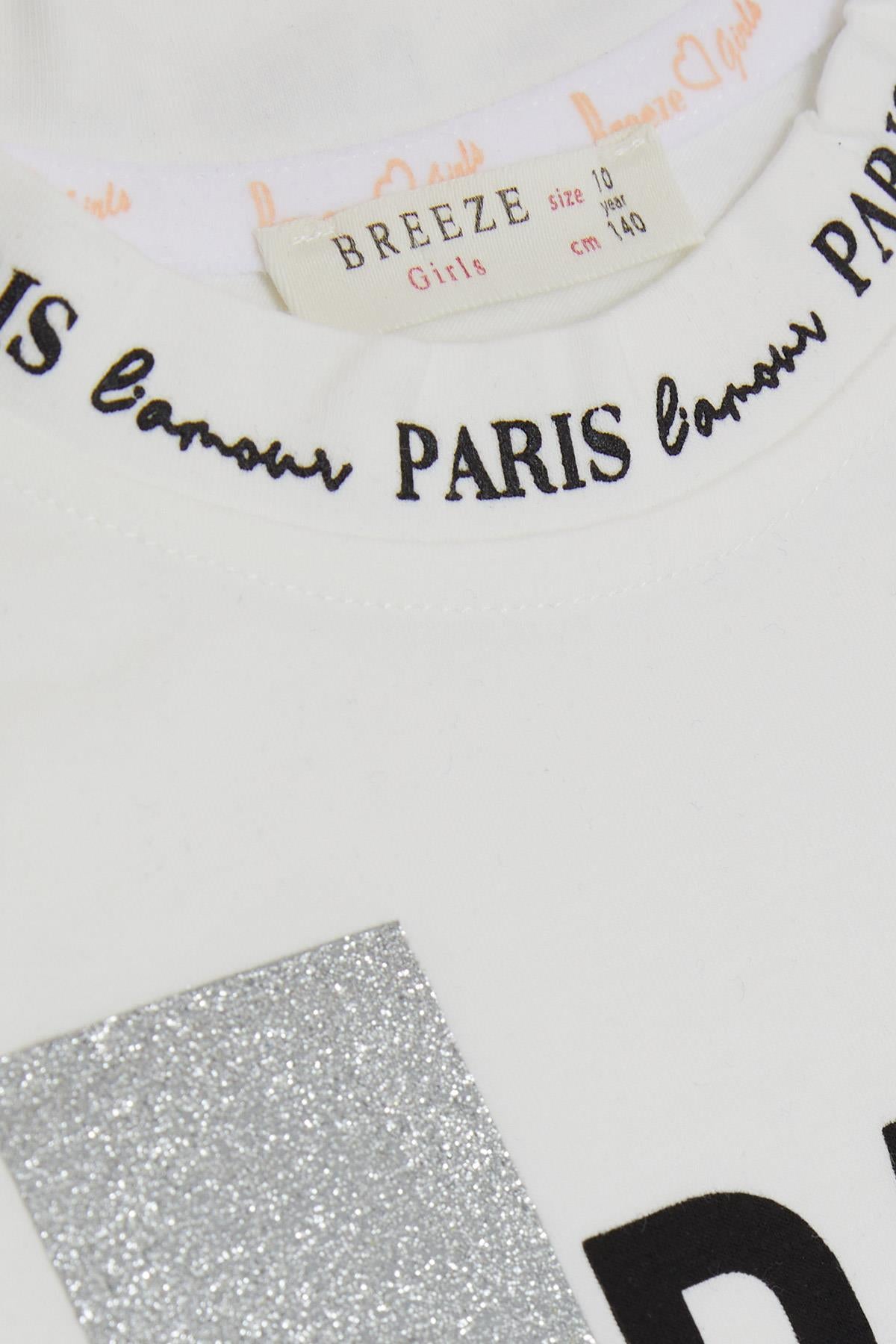 BRE Breeze Girl's T-Shirt with Printed Text, Glittery Sides with Ruffles, 94 Years, Ecru - Sinsheim