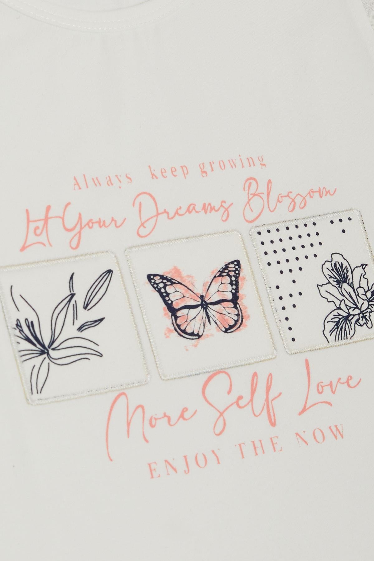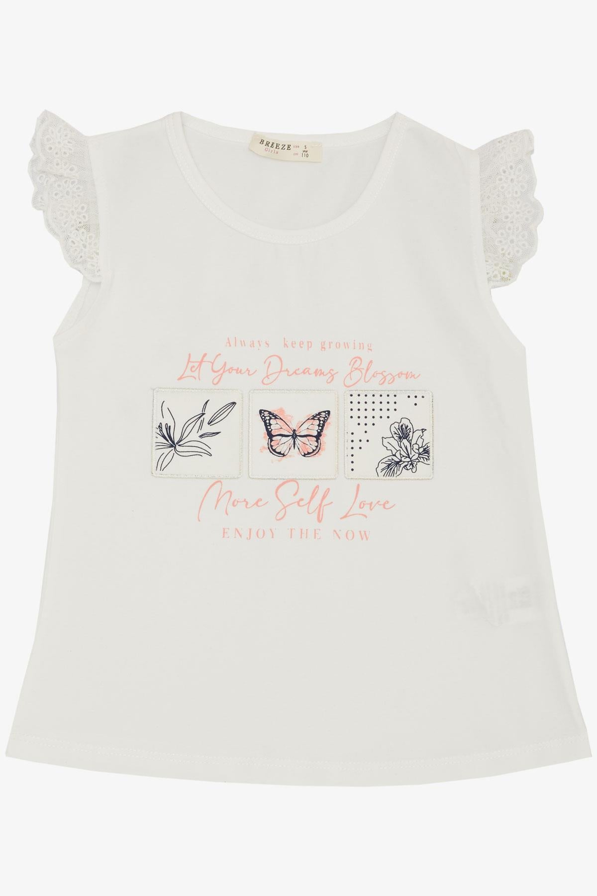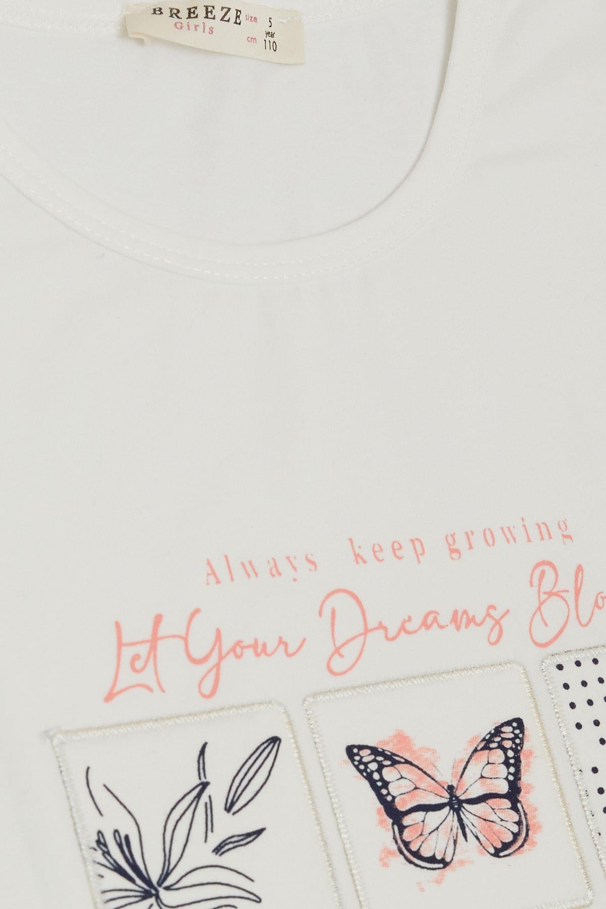 BRE Breeze Girl's T-shirt with Puff Sleeve Embroidered Butterfly Print 1.5-5 Years, Ecru - Forlì