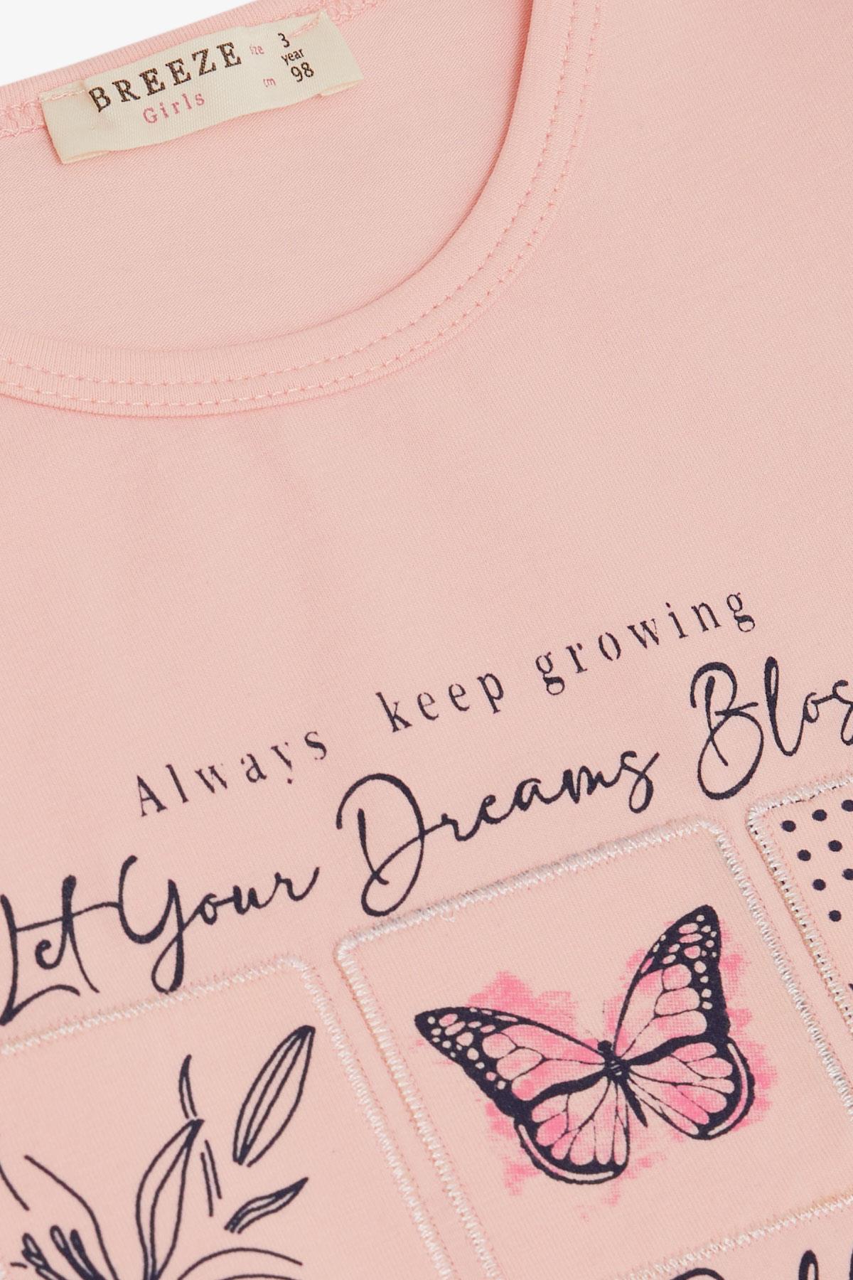 BRE Breeze Girl's T-shirt with Puff Sleeve, Guipure Embroidery, Butterfly Print, 1.5-5 Years, Pink - Emden