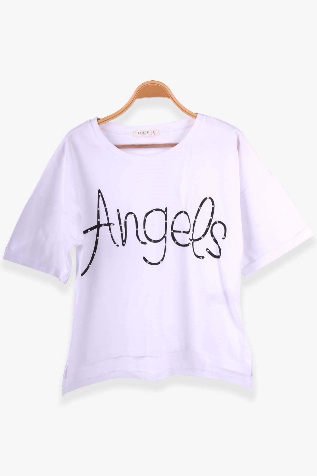 BRE Breeze Girl's T-shirt with Rhinestone Printed Text, 96 Years, White - San Juan Cancuc