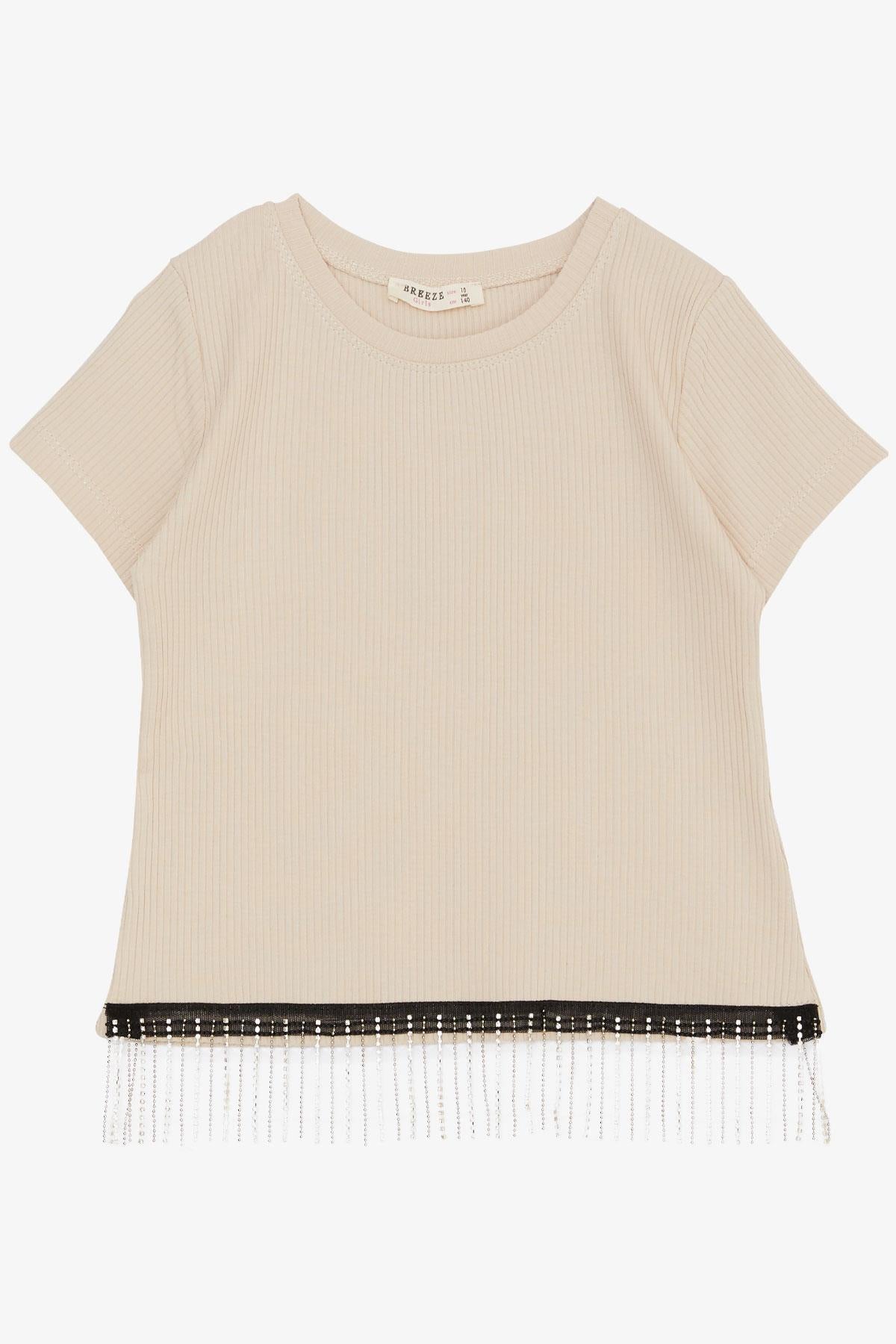 BRE Breeze Girl's T-shirt with Stone Fringes 94 Years, Beige - Middlesbrough