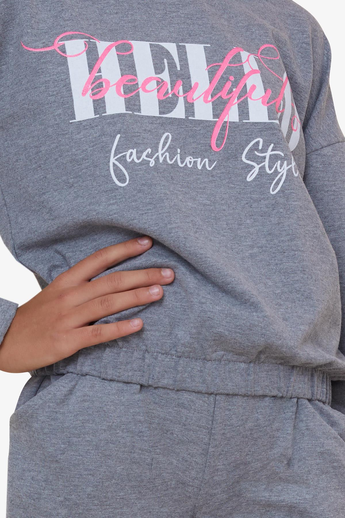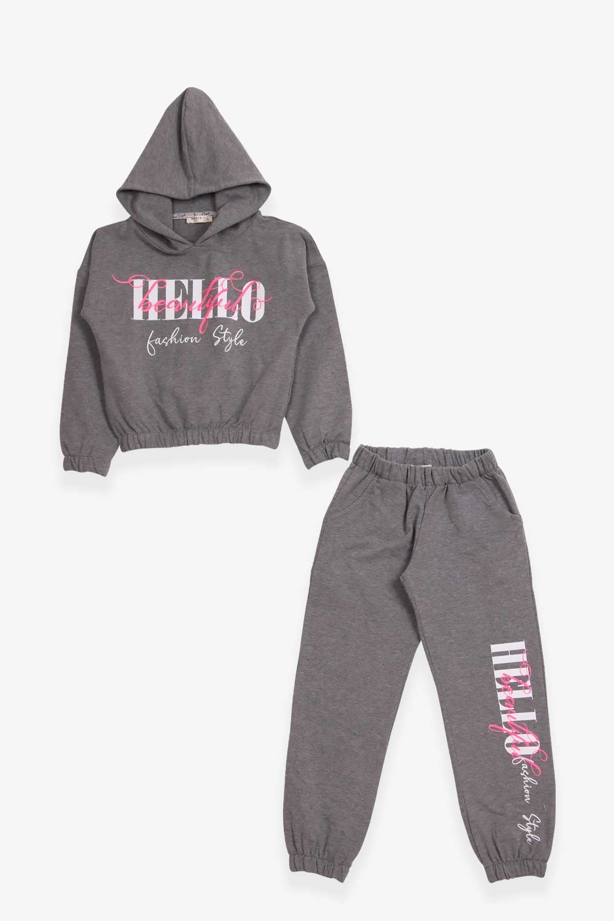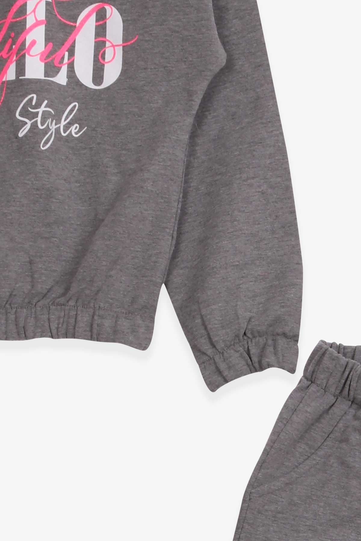 BRE Breeze Girl's Tracksuit with Glittery Printed Text 84 Years, Dark Grey Melange - Lehi