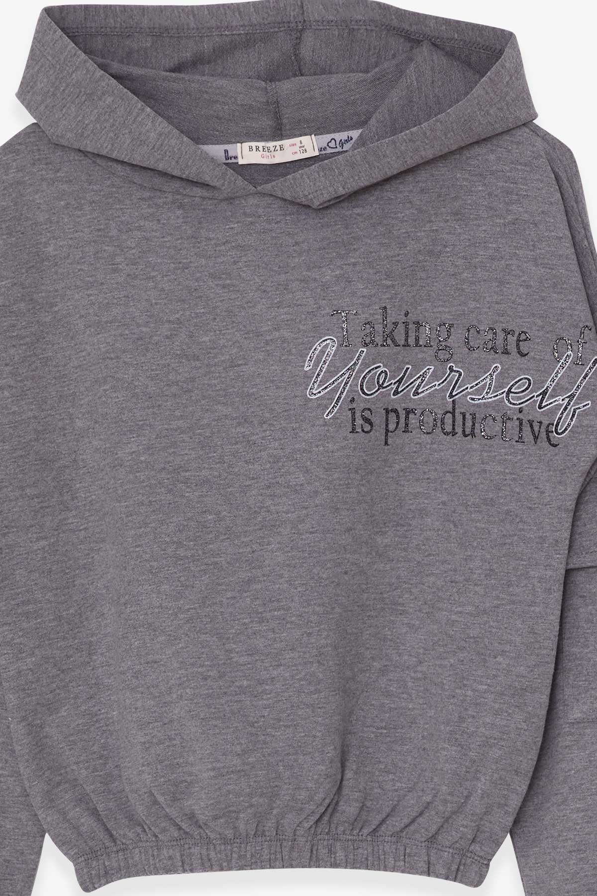 BRE Breeze Girl's Tracksuit with Printed Writing Cargo Pocketed 84 Years, Dark Grey Melange - Stains