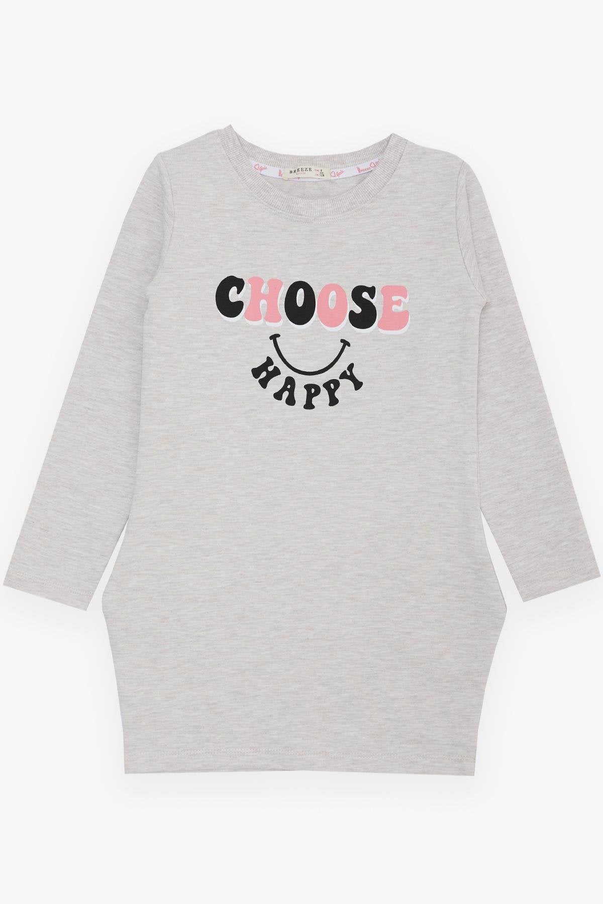 BRE Breeze Girl's Tunic with Happiness Theme Print, 82 Years, Beige Melange - Sambir