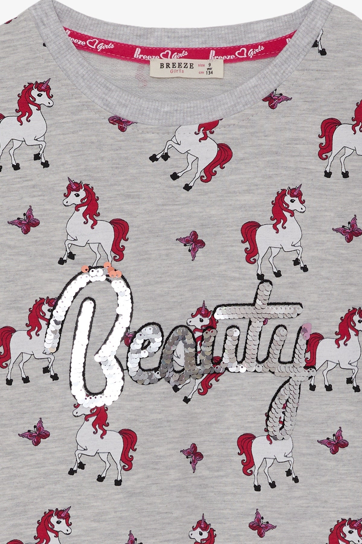 BRE Breeze Girl's Tunic with Unicorn Pattern, 4-9 Years, Light Grey Melange - Paterno