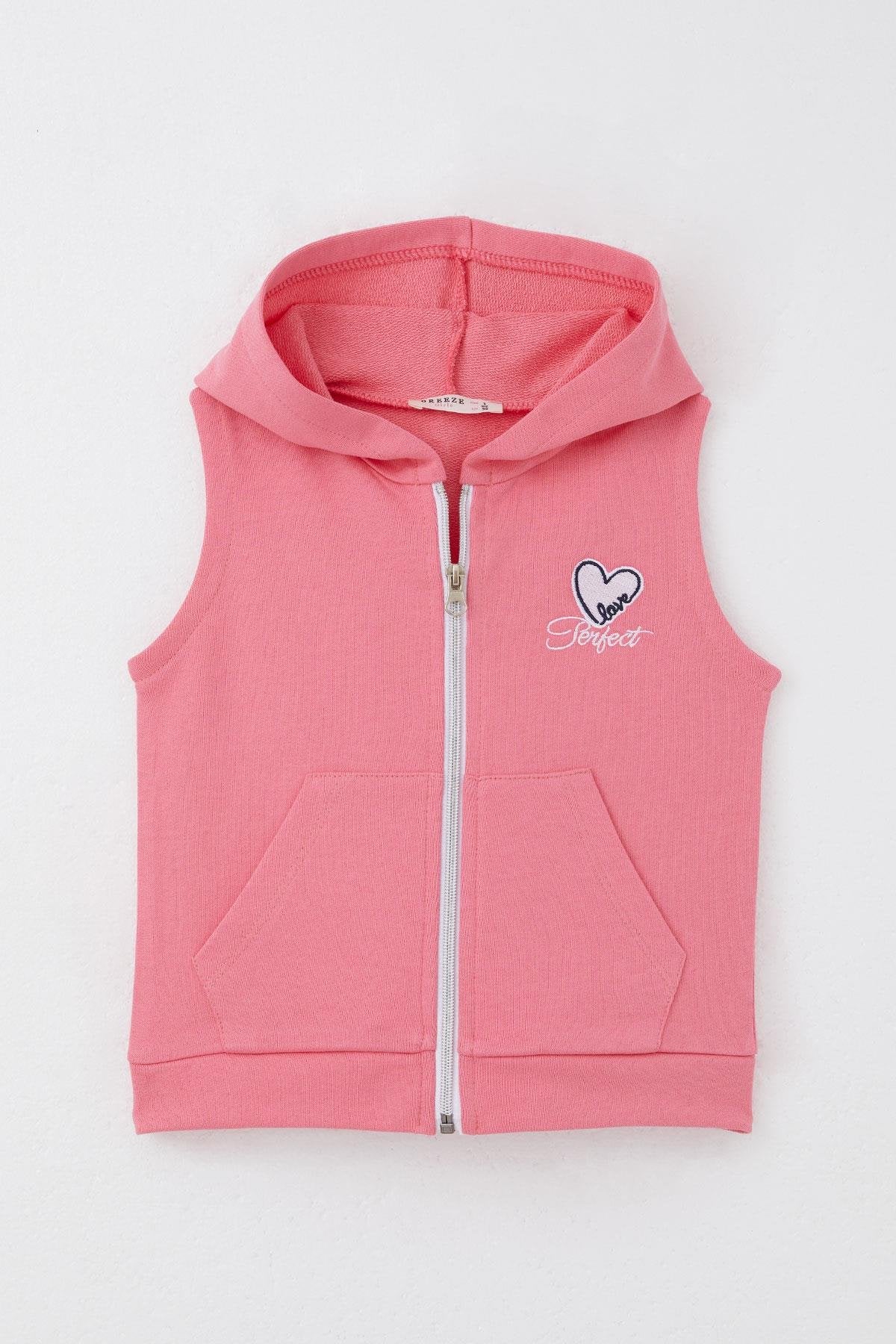 BRE Breeze Girl's Vest Heart & Text Embroidered Zippered 3-8 Years, Pink - San Giuliano Milanese