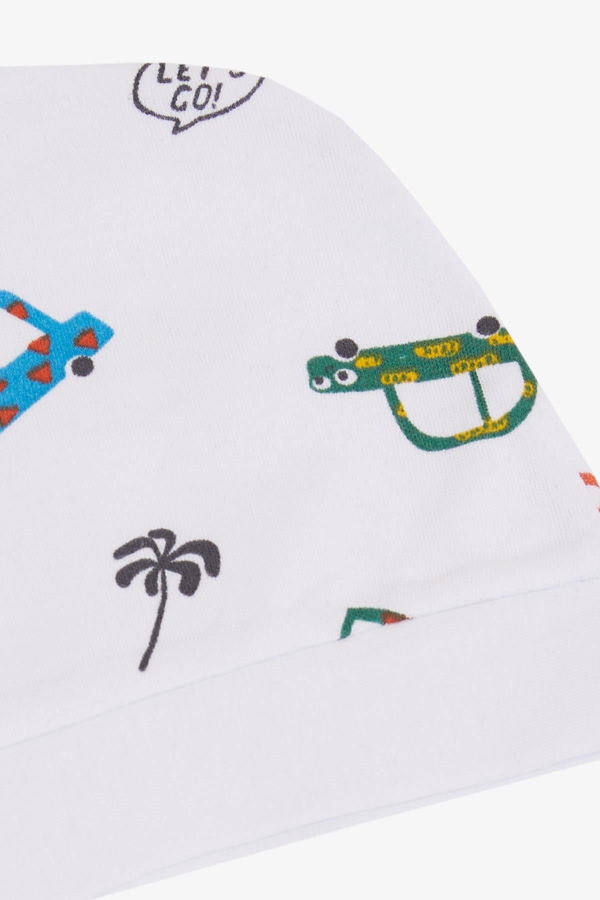 BRE Breeze Newborn Baby Hat with Car Pattern White - Wageningen