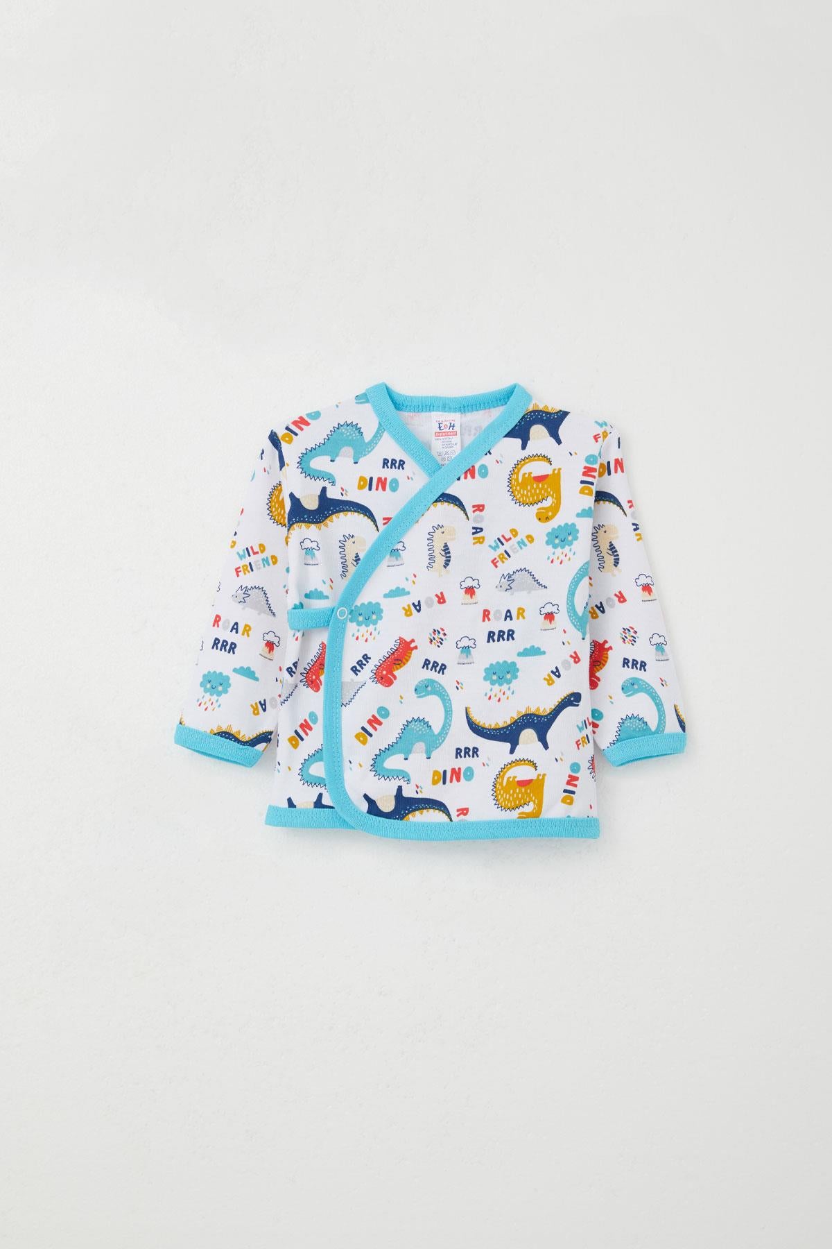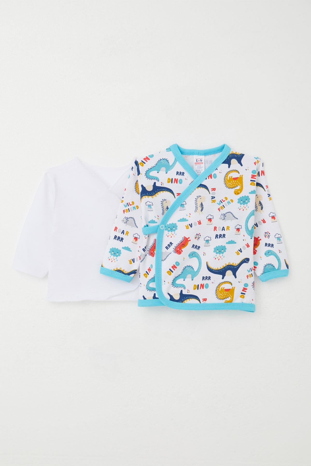 BRE Breeze Newborn Baby Inside Out Snap Fastener 2-Piece Bodysuit Dinosaur Patterned 0-3 Months, White - Eagle Mountain