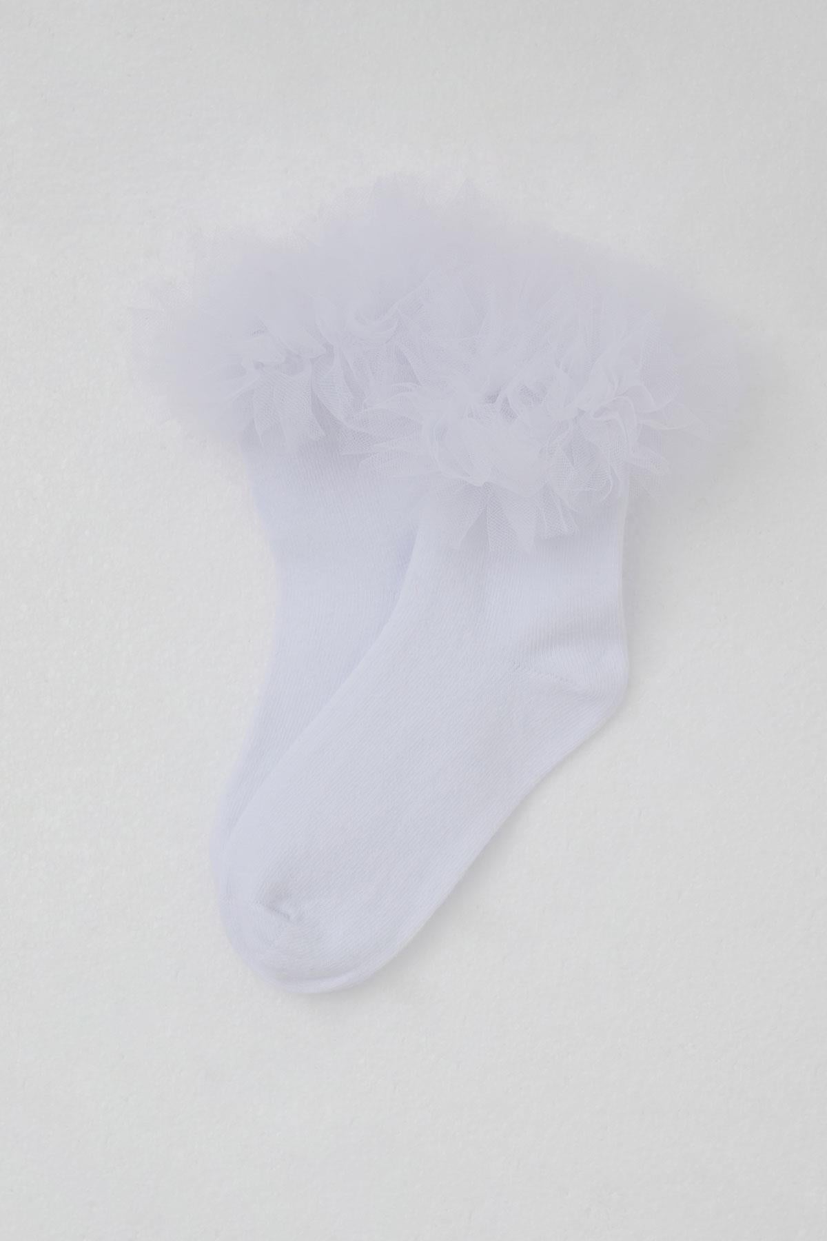 BRE Katamino Girl Child Socks with Tulle Detail on Ankle Part, 3-8 Years, White - Alhaurín de la Torre