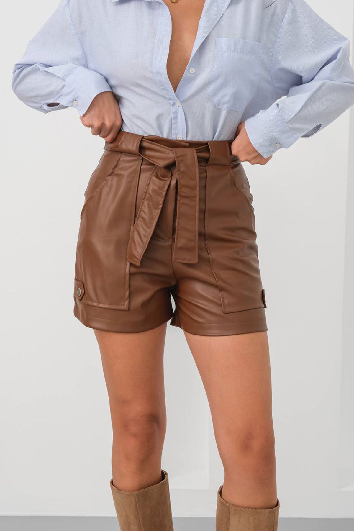 Brown Belted Wide Pocket Shorts BCHN-25260086 - Myrnohrad