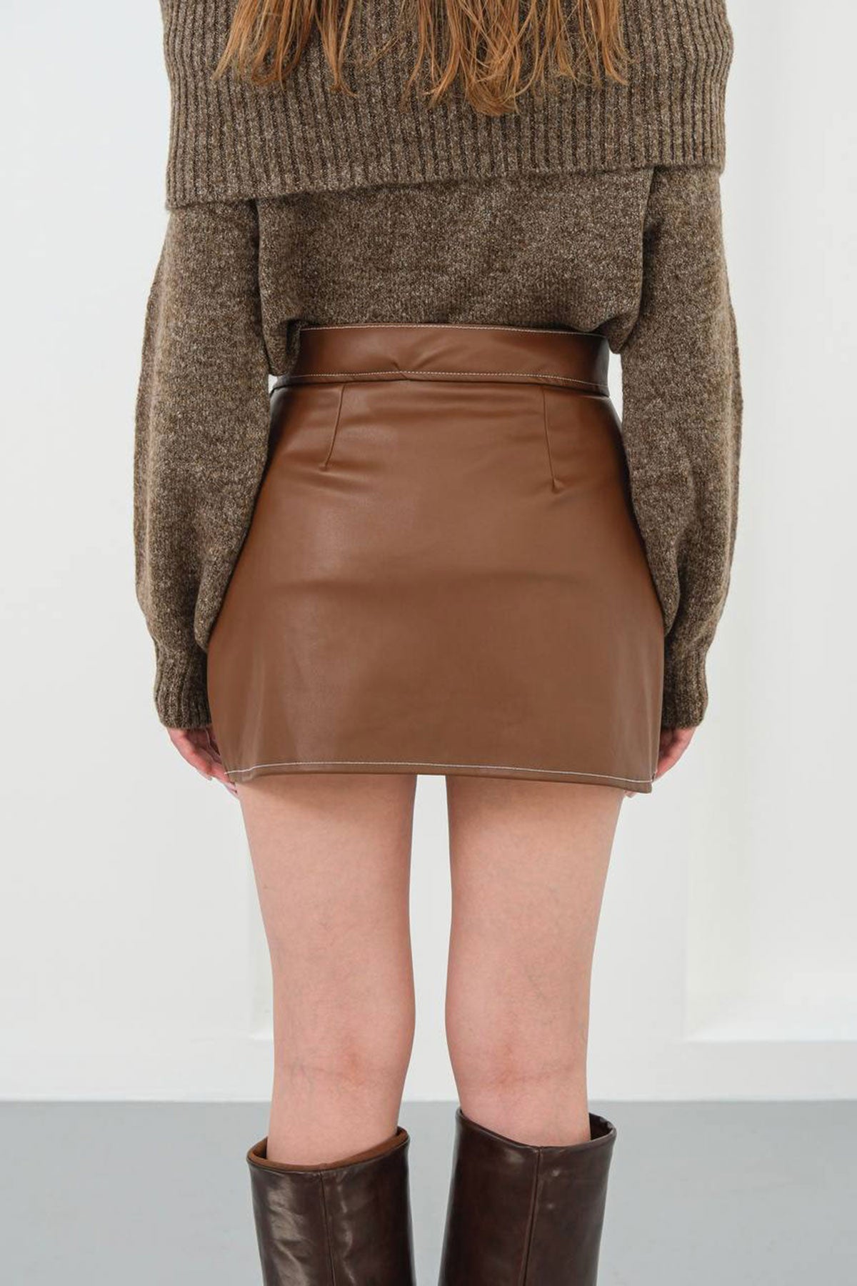Brown Contrast Stitch Detail Shorts Skirt BCHN-25W260015 - Brampton