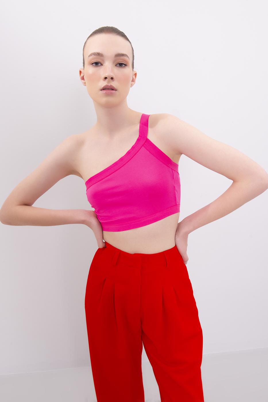 BSL Women One Shoulder Strapped Back Crop Top - Dachau