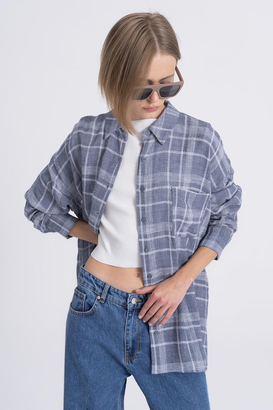 BSL Women Plaid Oversize Wool Blend Shirt - Sinsheim