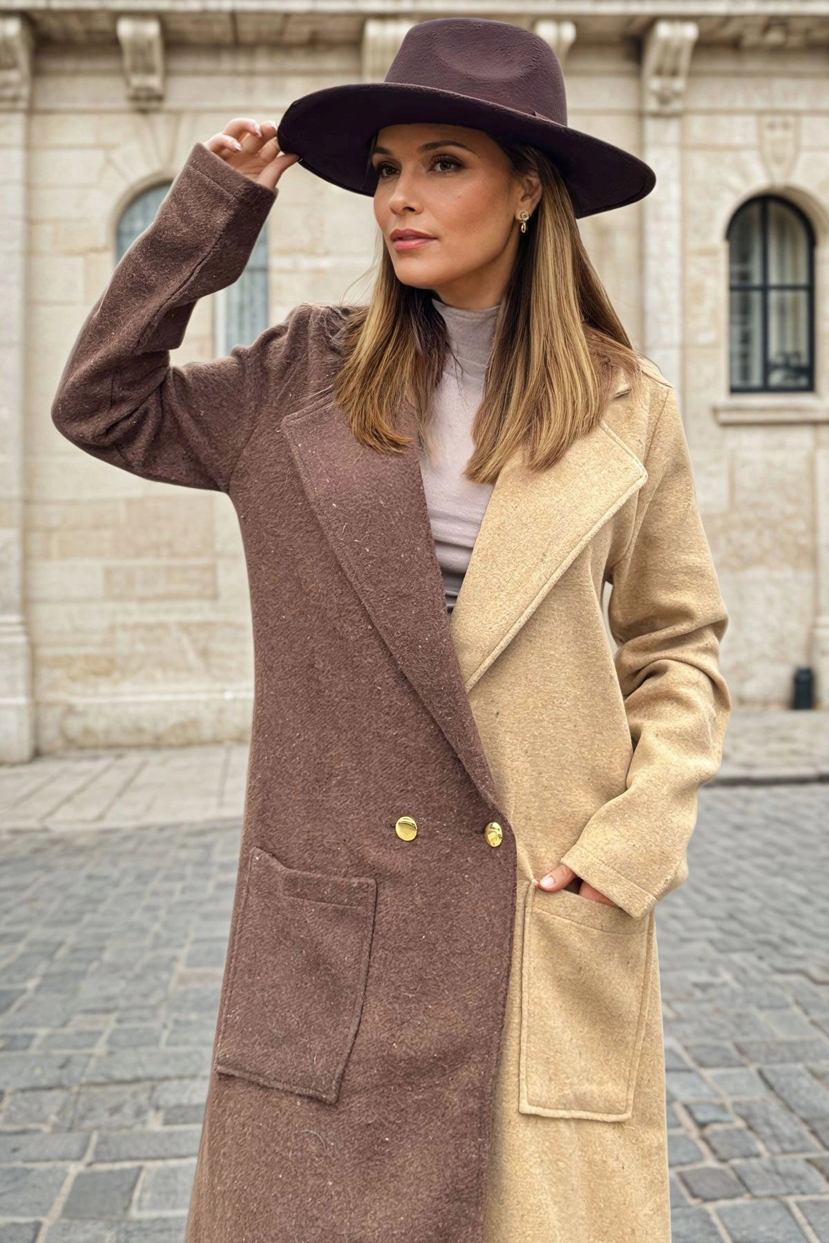 Coffee Kahvebej Stamp Color Block Buttoned Pocketed Coat BCBSK-25700-3320 - Sydney