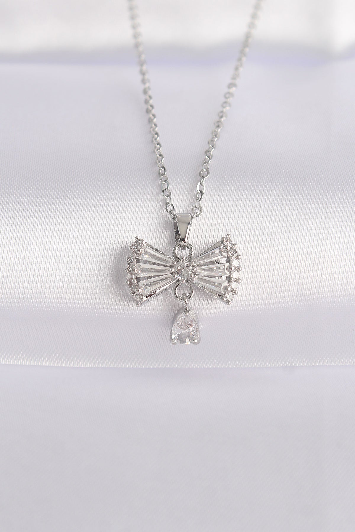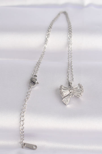 EBJ 316L Stainless Steel Chain Silver Color Zircon Stone Heart Detail Bow Necklace - Bergheim