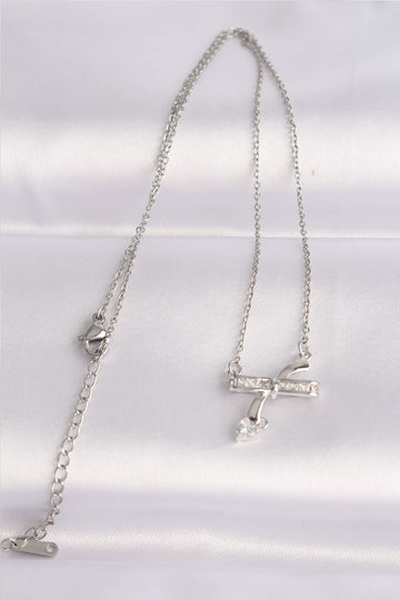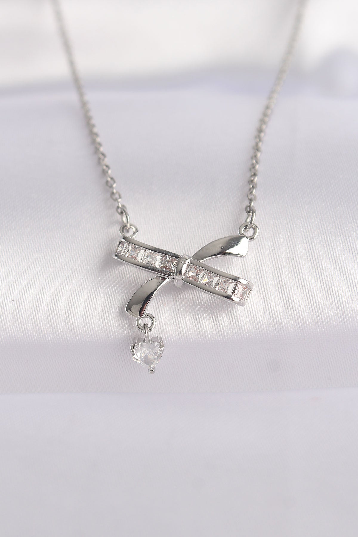 EBJ 316L Stainless Steel Chain Silver Color Zircon Stone Heart Detail Bow Necklace - Saginaw