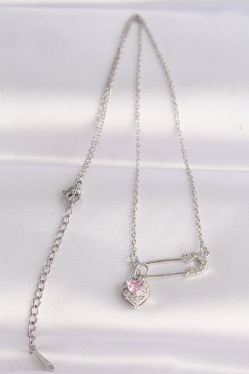 EBJ 316L Stainless Steel Chain Silver Color Zircon Stone Heart Detail Safety Pin Designed Necklace - Berchem