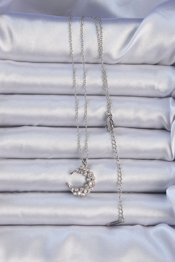 EBJ 316L Stainless Steel Chain Silver Color Zircon Stone Moon Necklace - West Jordan