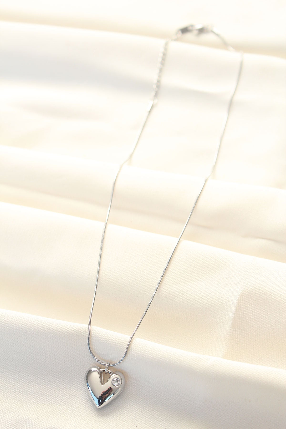 EBJ 316L Stainless Steel Silver Color Single Stone Heart Necklace - Alcorcón