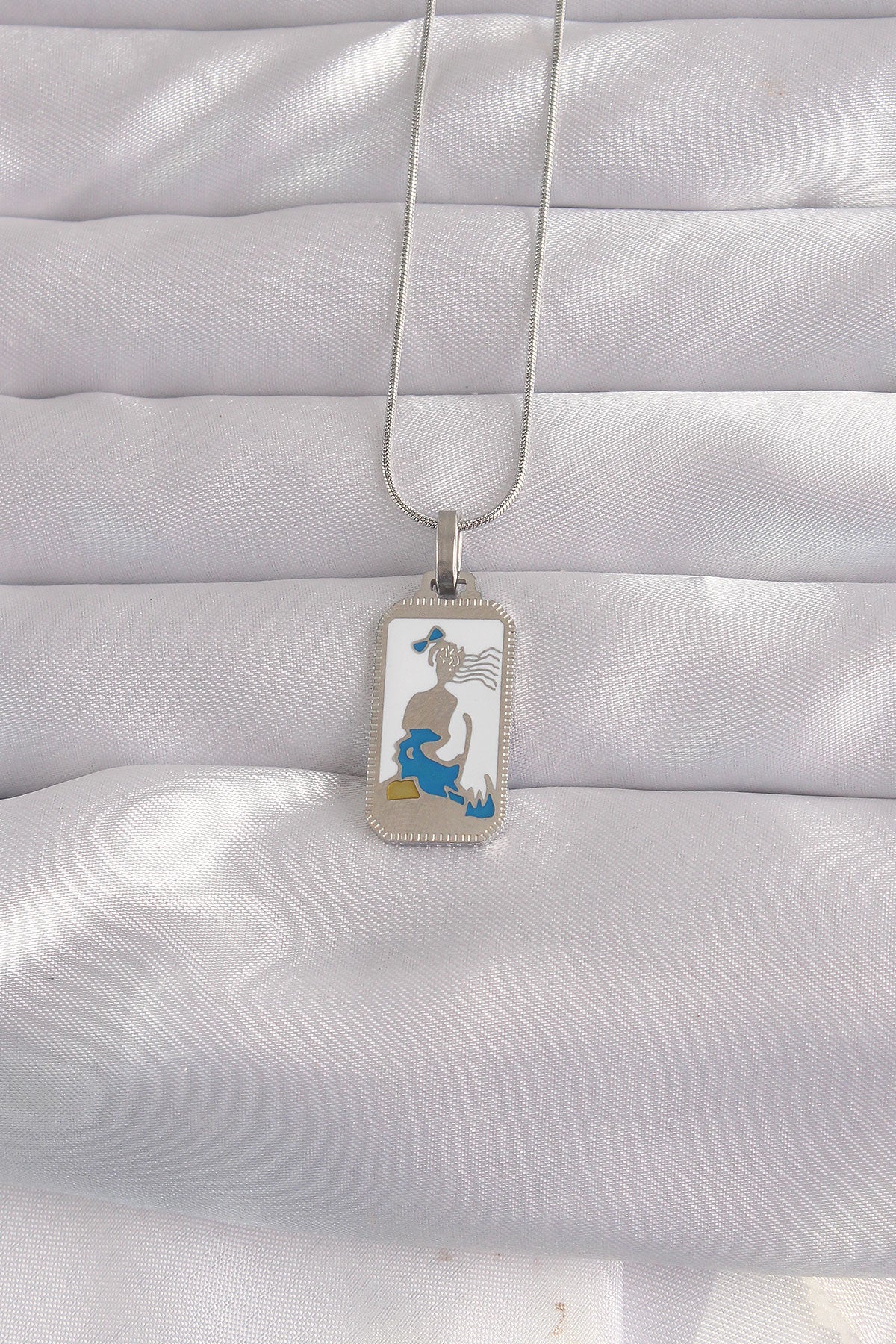 EBJ 316L Stainless Steel Silver Color White Enamel Girl Figure Tarot Necklace - Union City