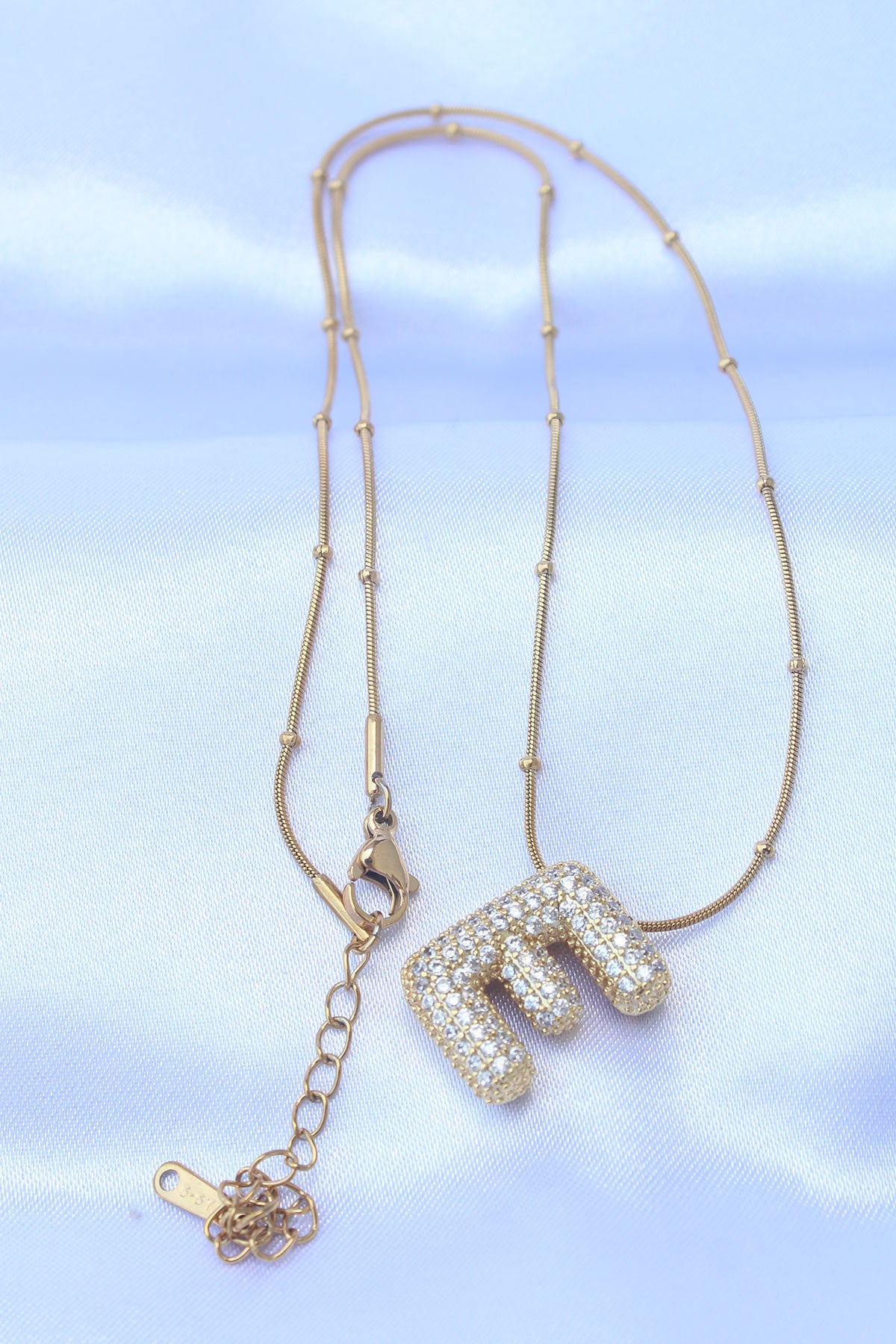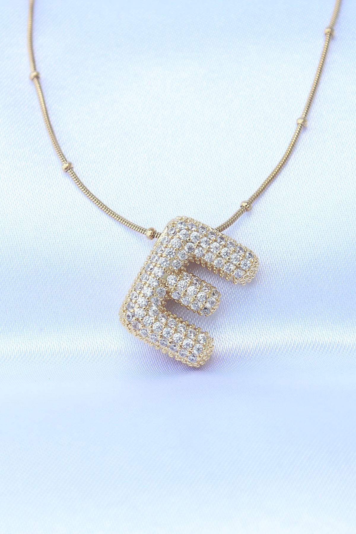 EBJ 316L Steel Chain with Zircon Stone Letter E Gold Color Bubble Necklace - Torremolinos