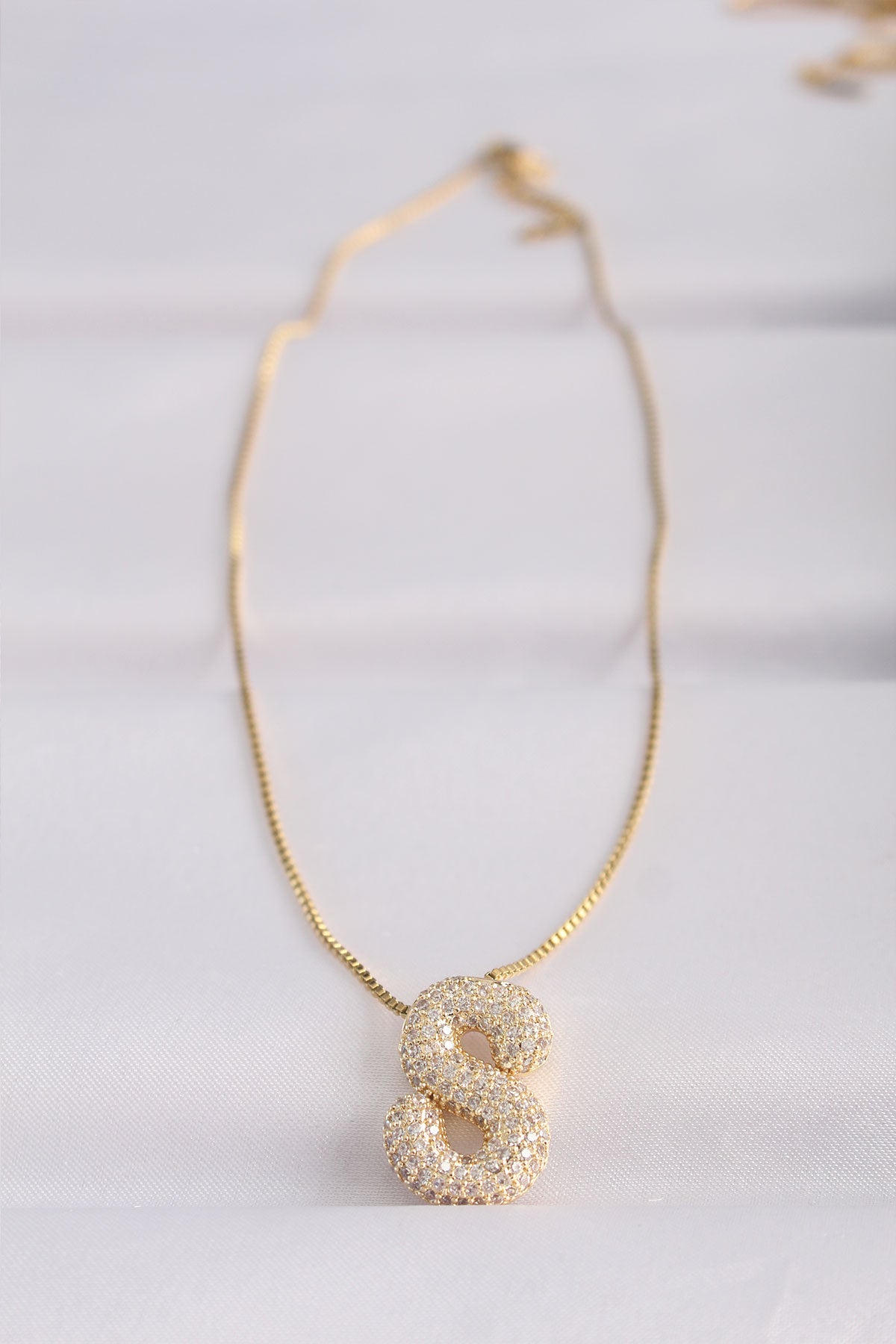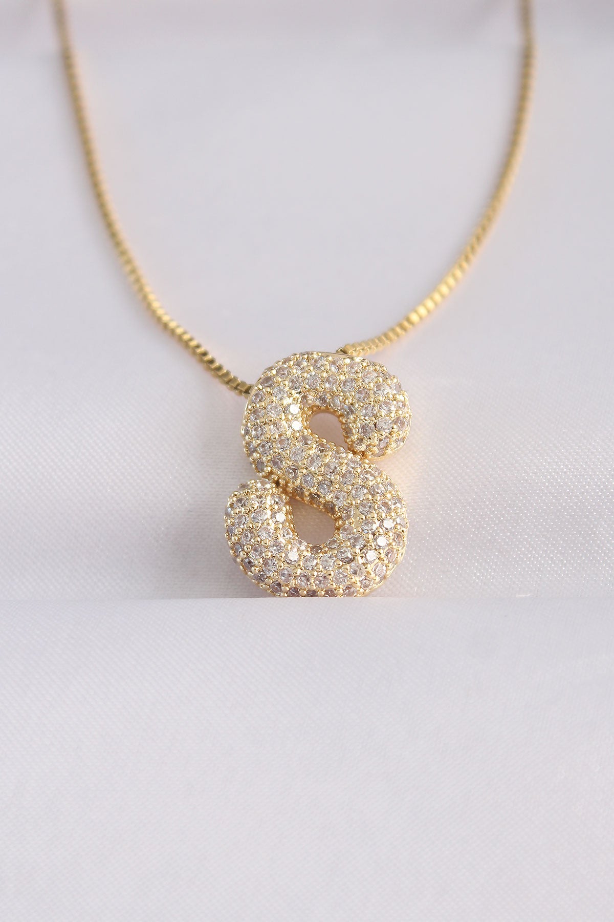 EBJ 316L Steel Chain with Zircon Stone Letter S Gold Color Bubble Necklace - Bradford