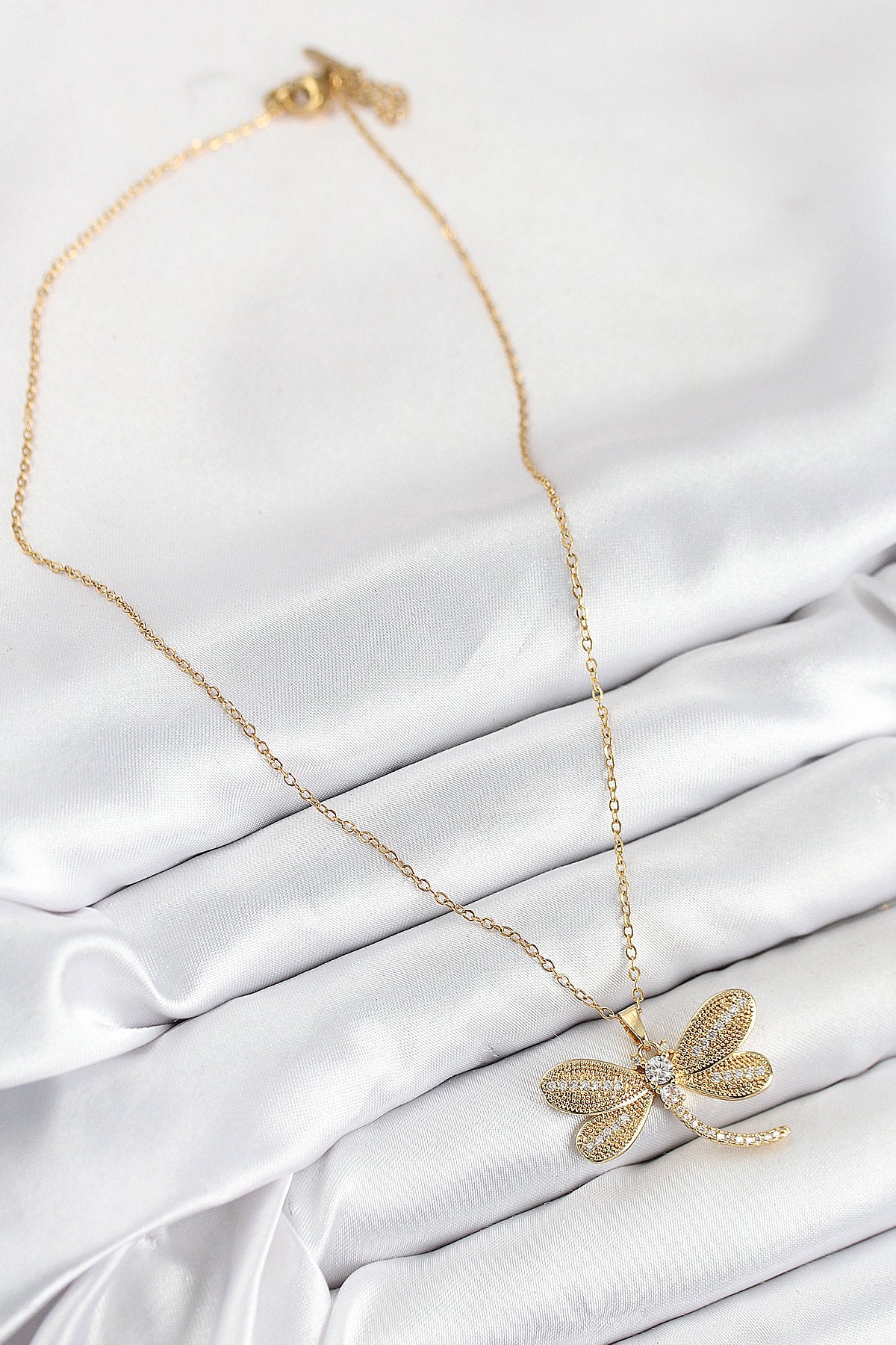 EBJ 316L Steel Dragonfly Model Necklace with Zircon Stone in Gold Color for Women - Champaign