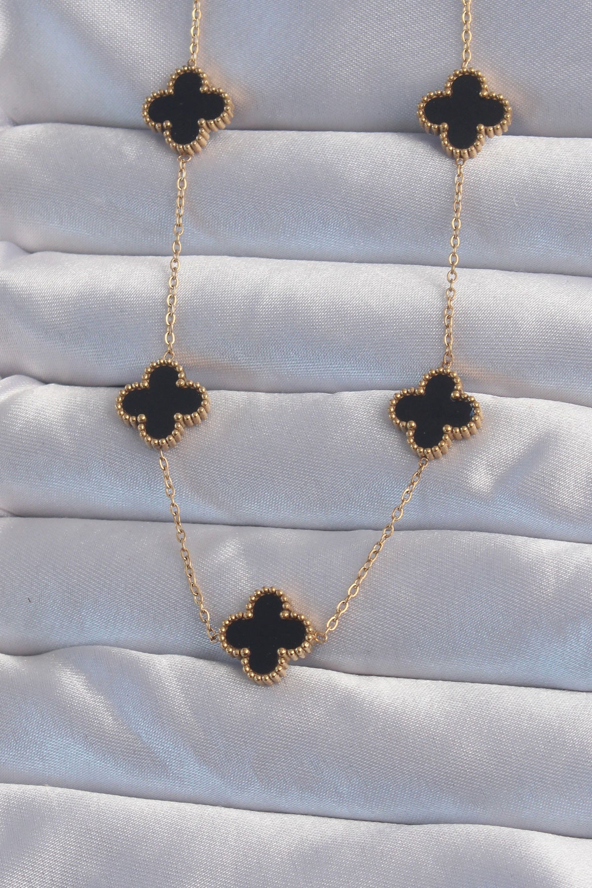 EBJ 316L Steel Gold Color Black Enamel Clover Necklace - Crawley