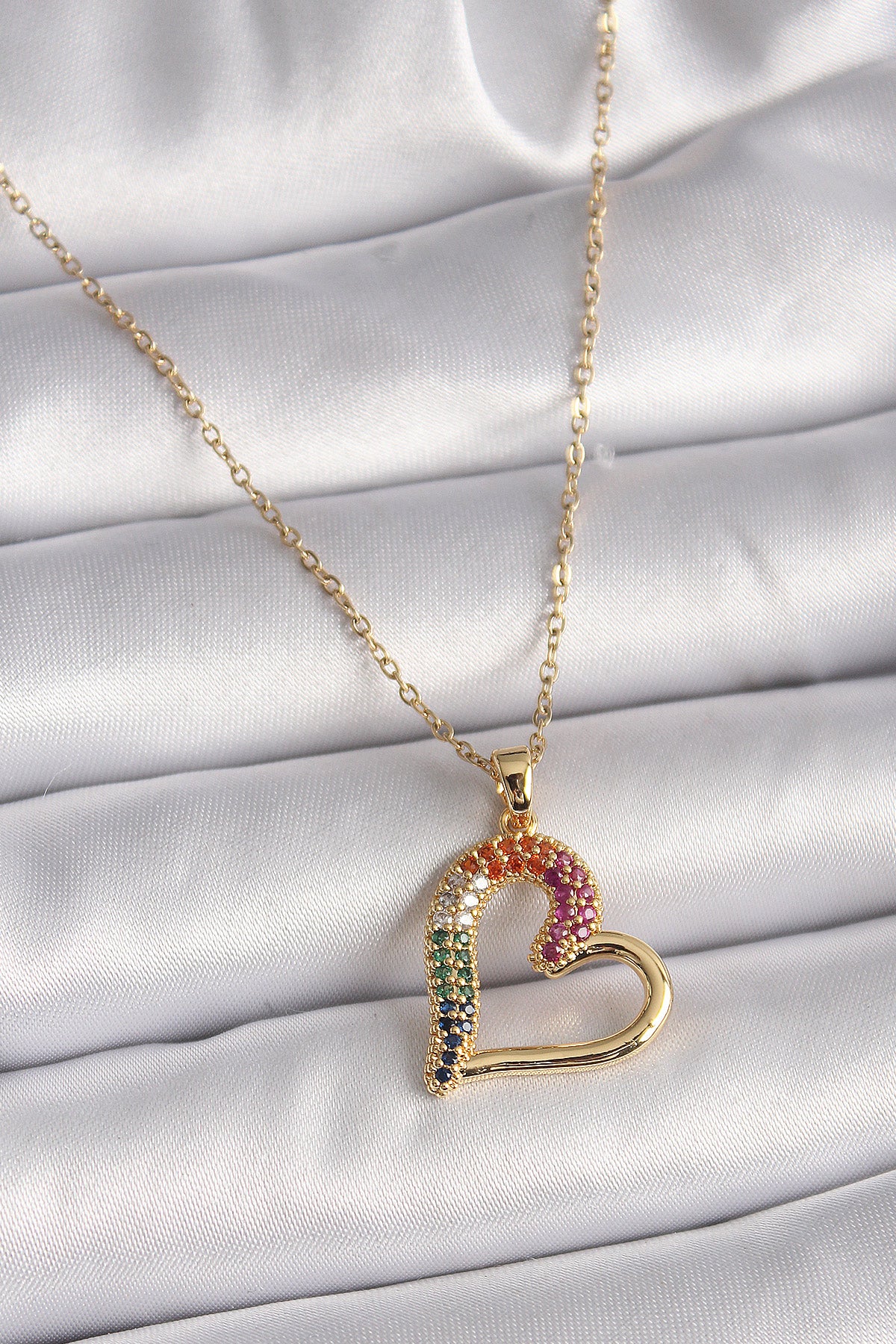 EBJ 316L Steel Gold Color Chain Colorful Zircon Stone Heart Model Women's Necklace - Ellesmere Port