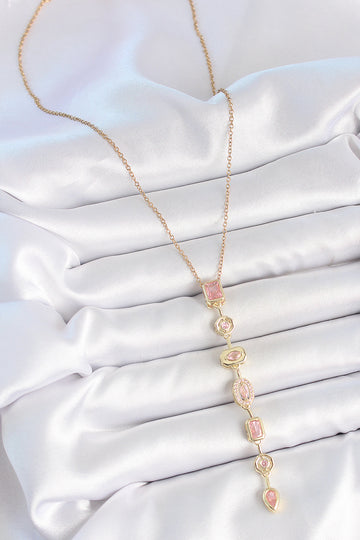 EBJ 316L Steel Gold Color Chain Pink Zircon Stone Y Model Decollete Women's Necklace - Plantation