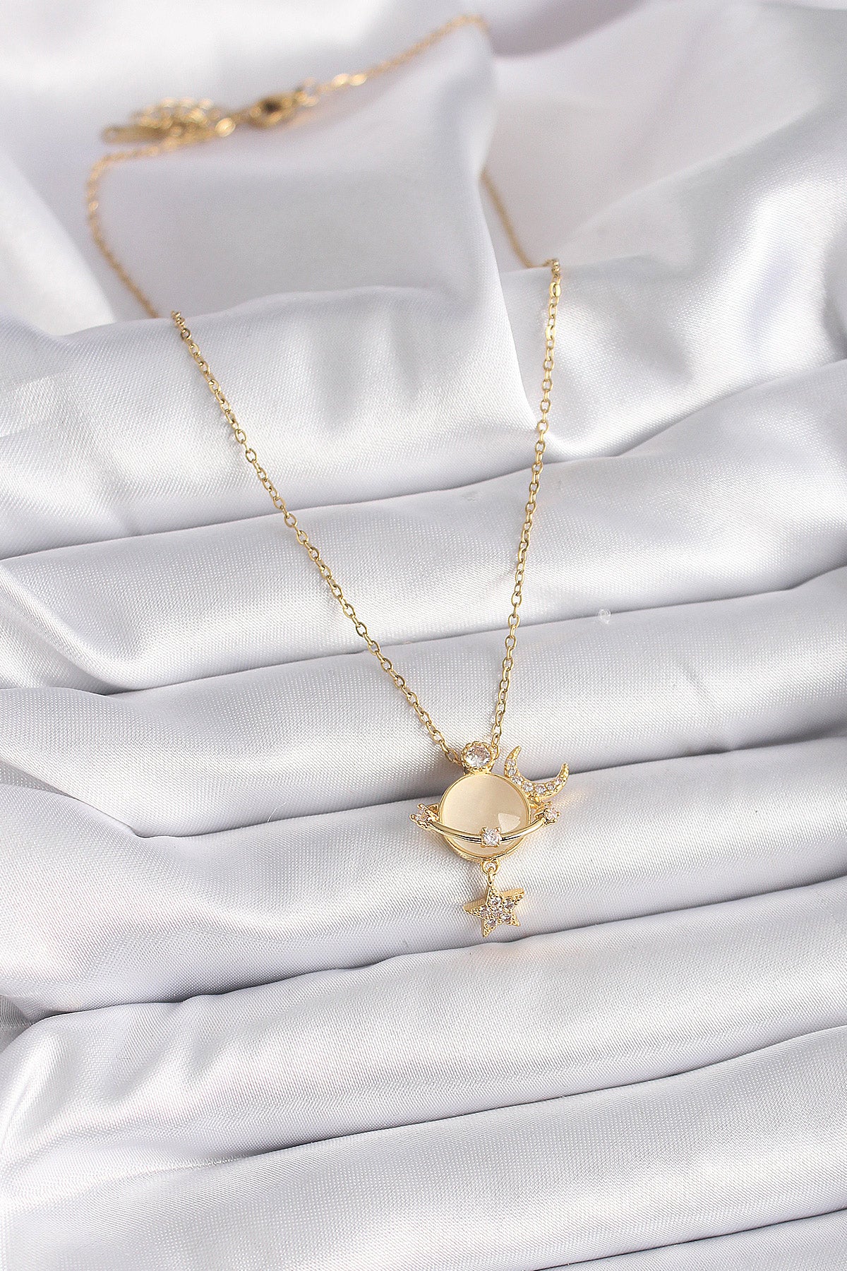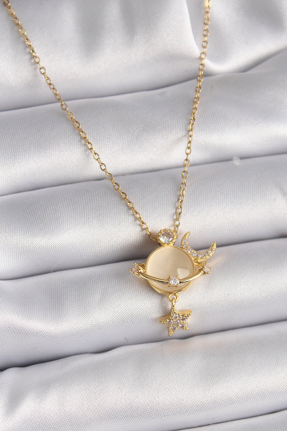 EBJ 316L Steel Gold Color Chain with Zircon Stone Yellow Enamel Crescent Star Model Women's Necklace - Fort Worth