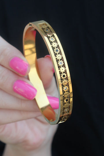 EBJ 316L Steel Gold Color Flower Pattern Zircon Stone Women's Cuff - La Habra
