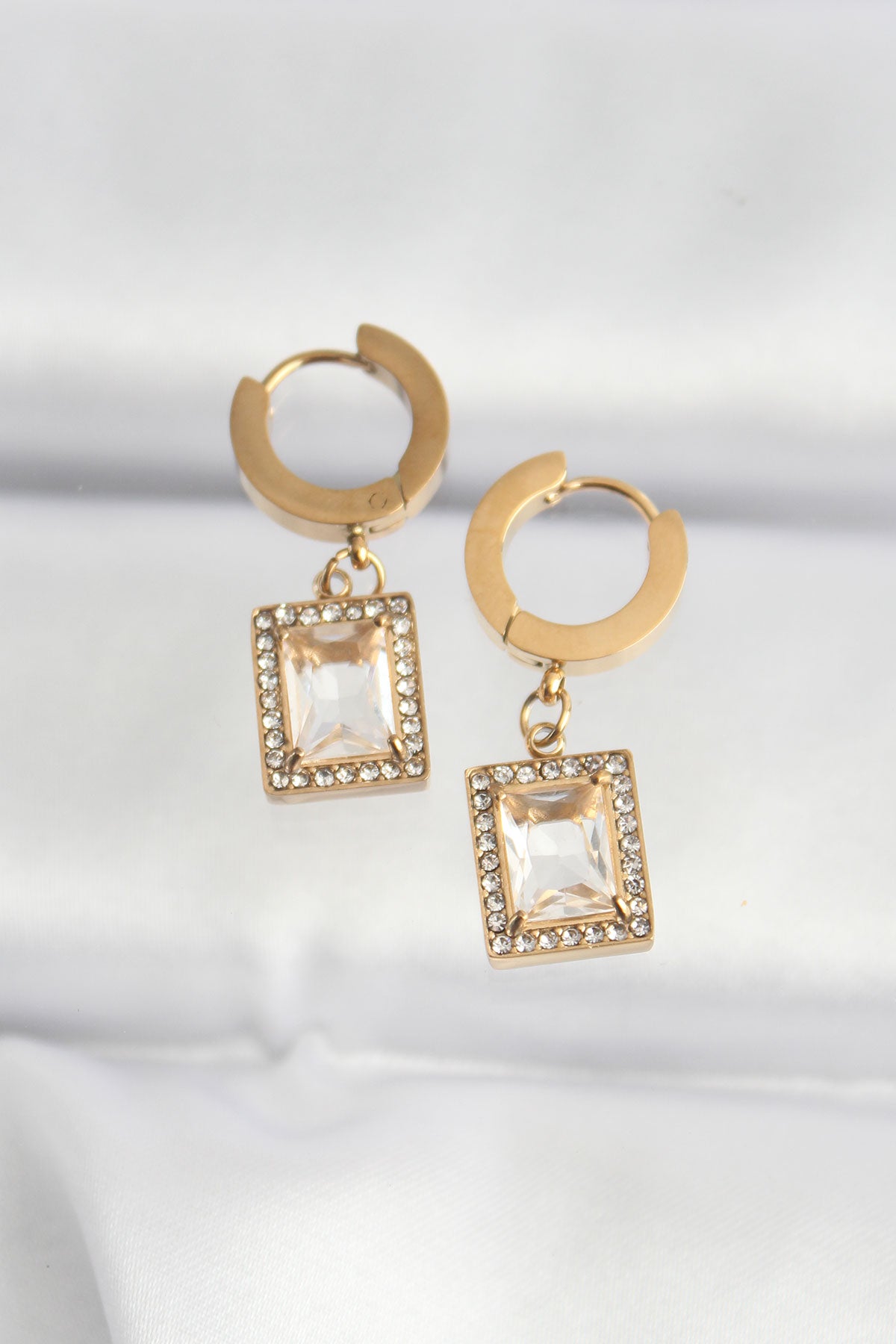 EBJ 316L Steel Gold Color Stone Rectangular Model Earring - Avilés