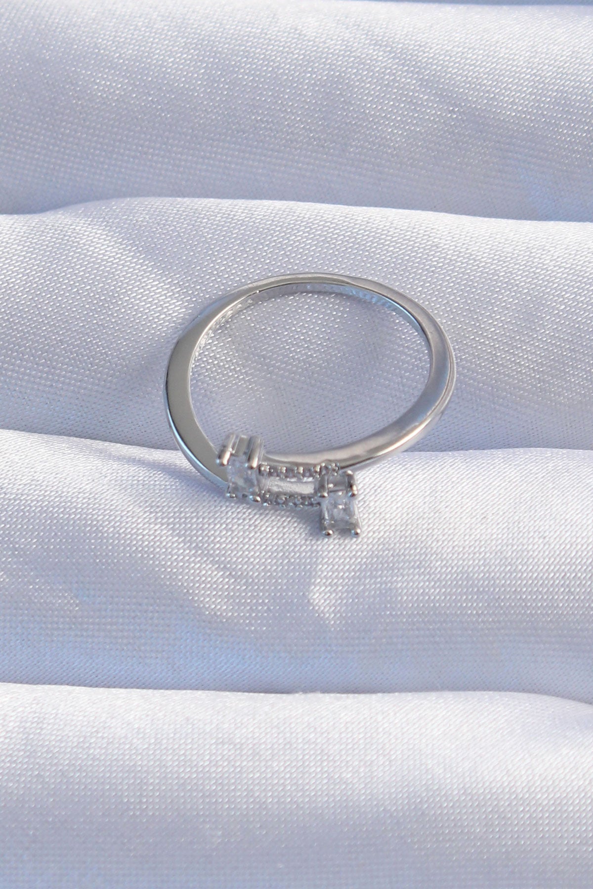 EBJ Adjustable Geometric Ring with Rice Silver Color Zircon Stone - Abbotsford