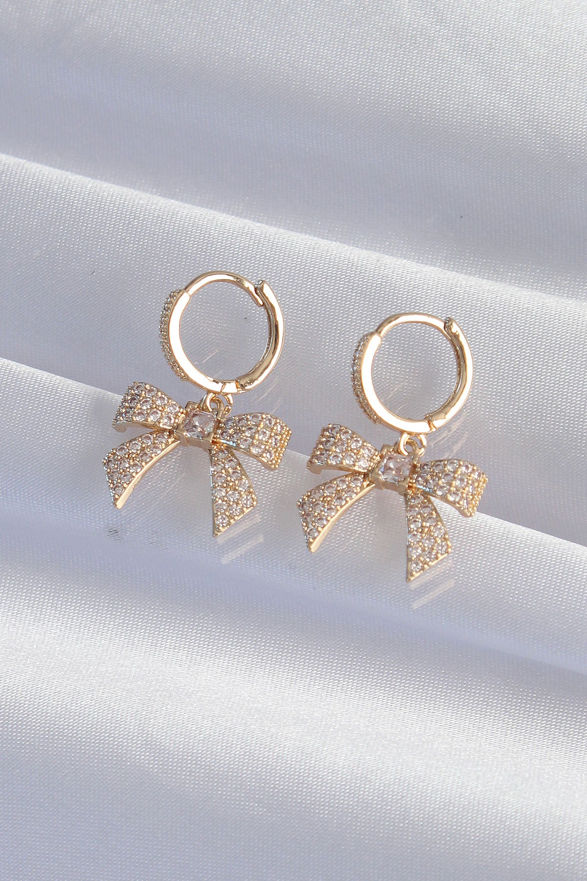EBJ Gold Color Zircon Stone Bow Model Hoop Earring - Heroica Matamoros