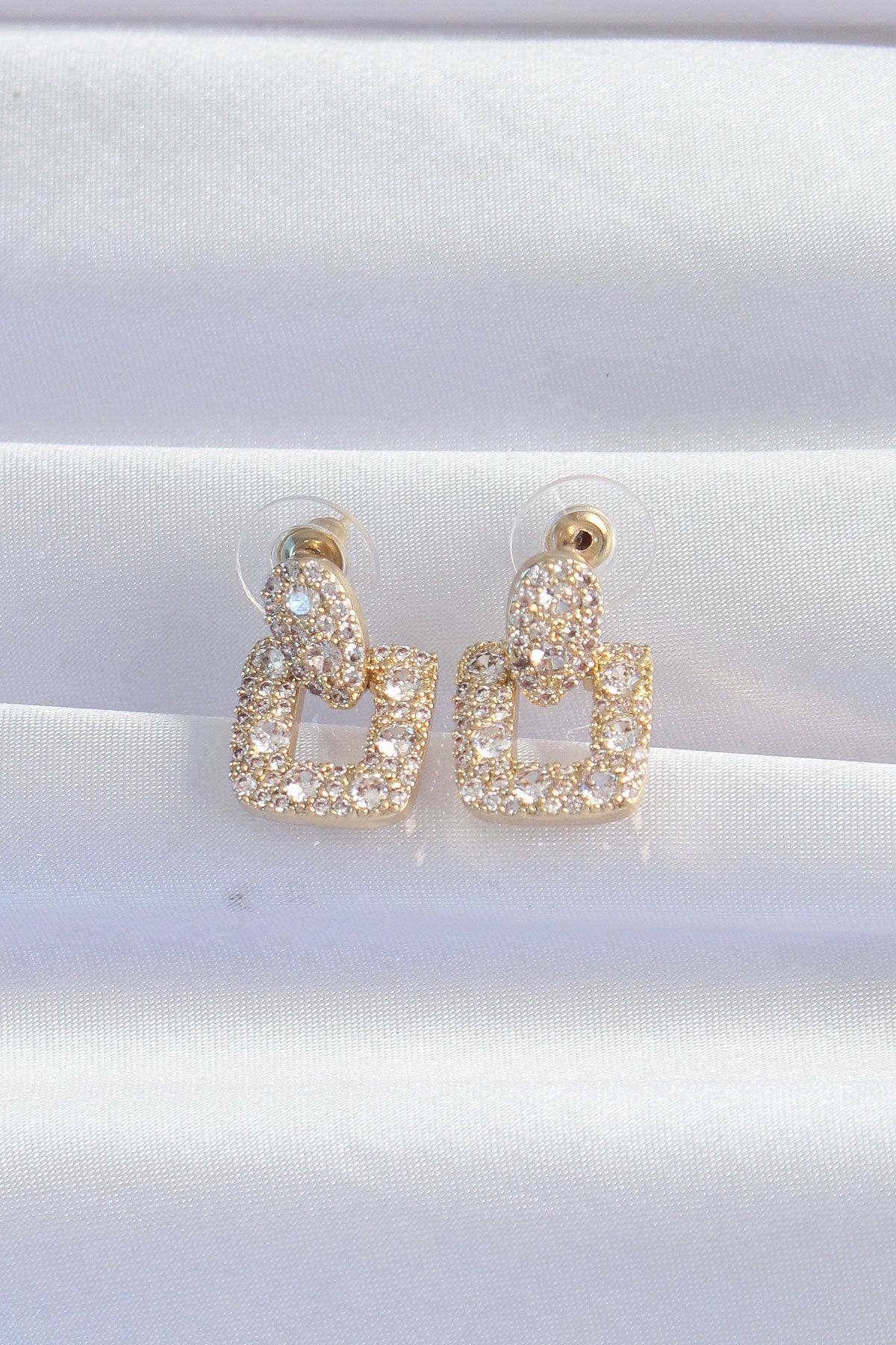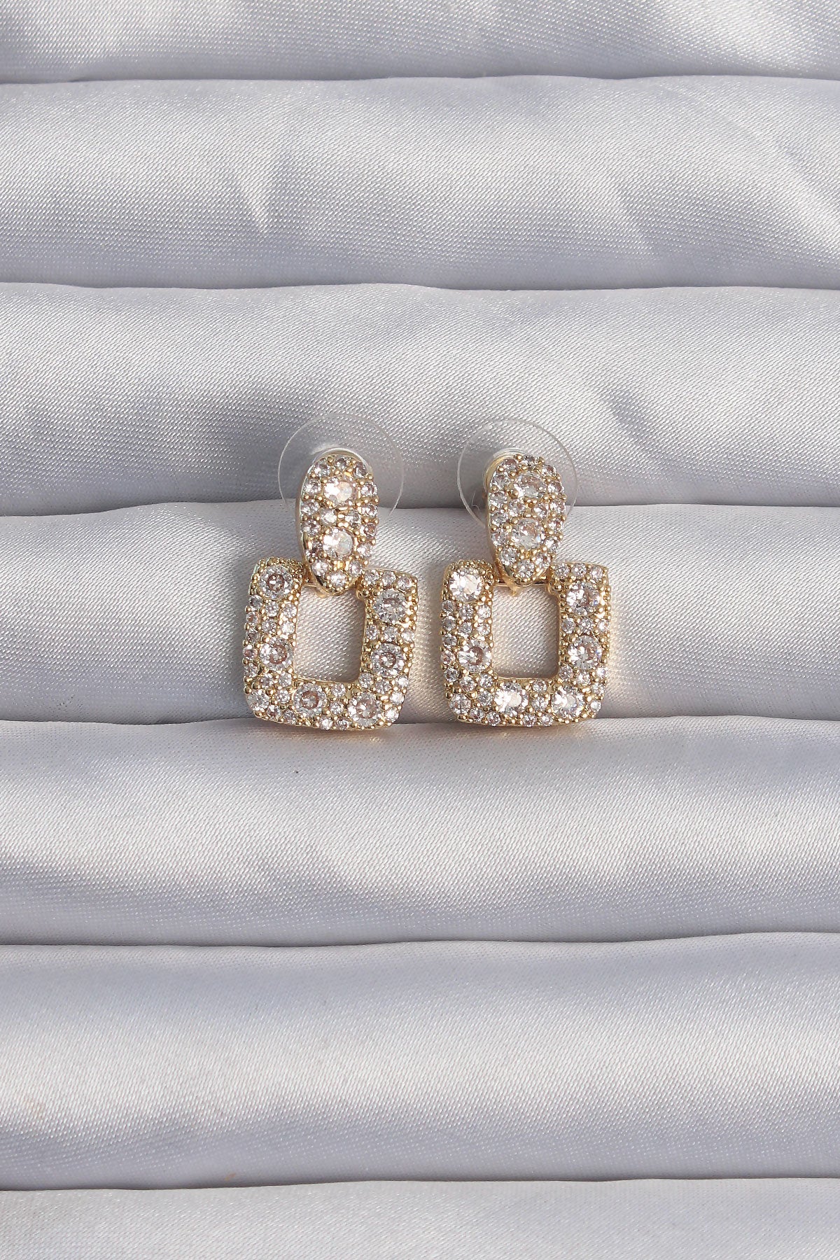 EBJ Gold Color Zircon Stone Square Shaped Earrings with Rice Pattern - Floreşti