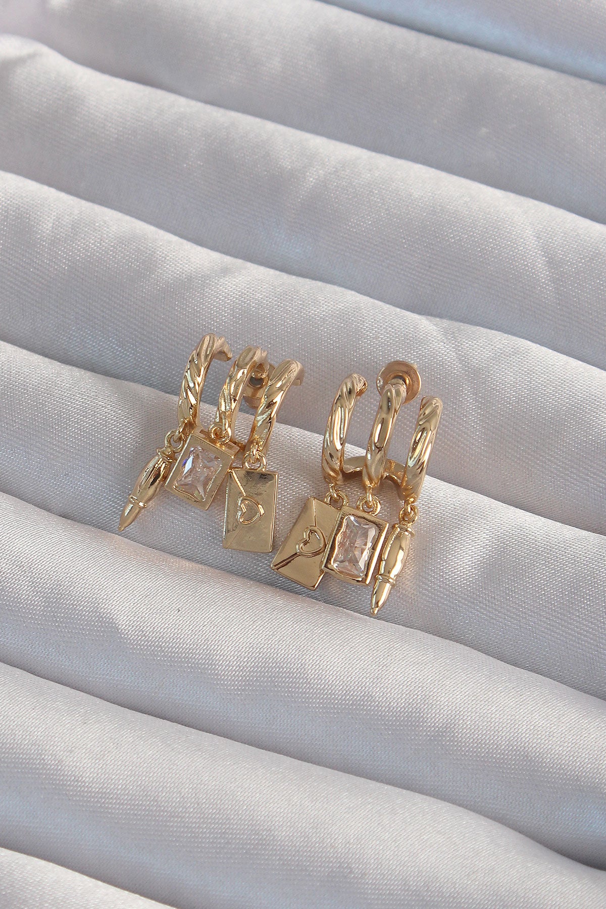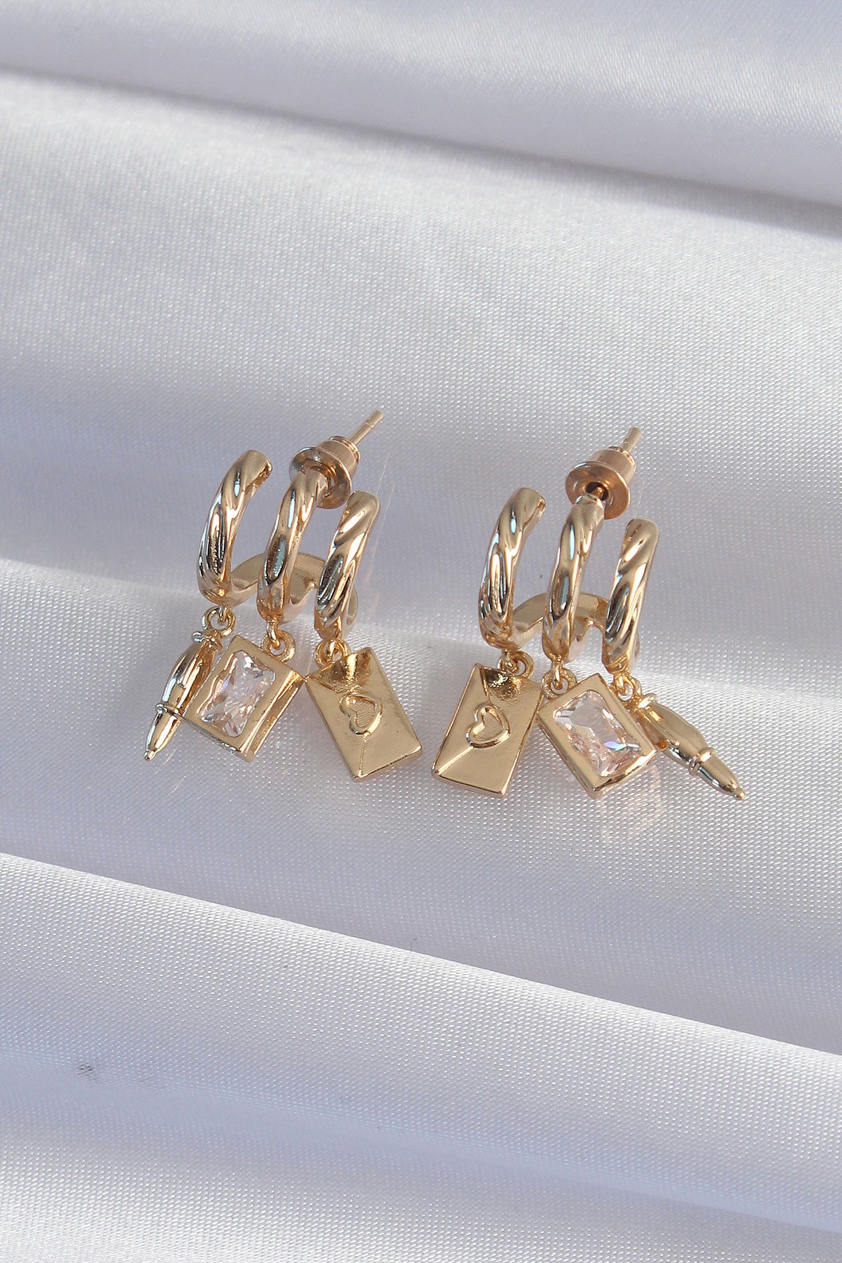 EBJ Rice Gold Color Zircon Stone Multi-Accessory Half Hoop Rib Earring - Des Moines
