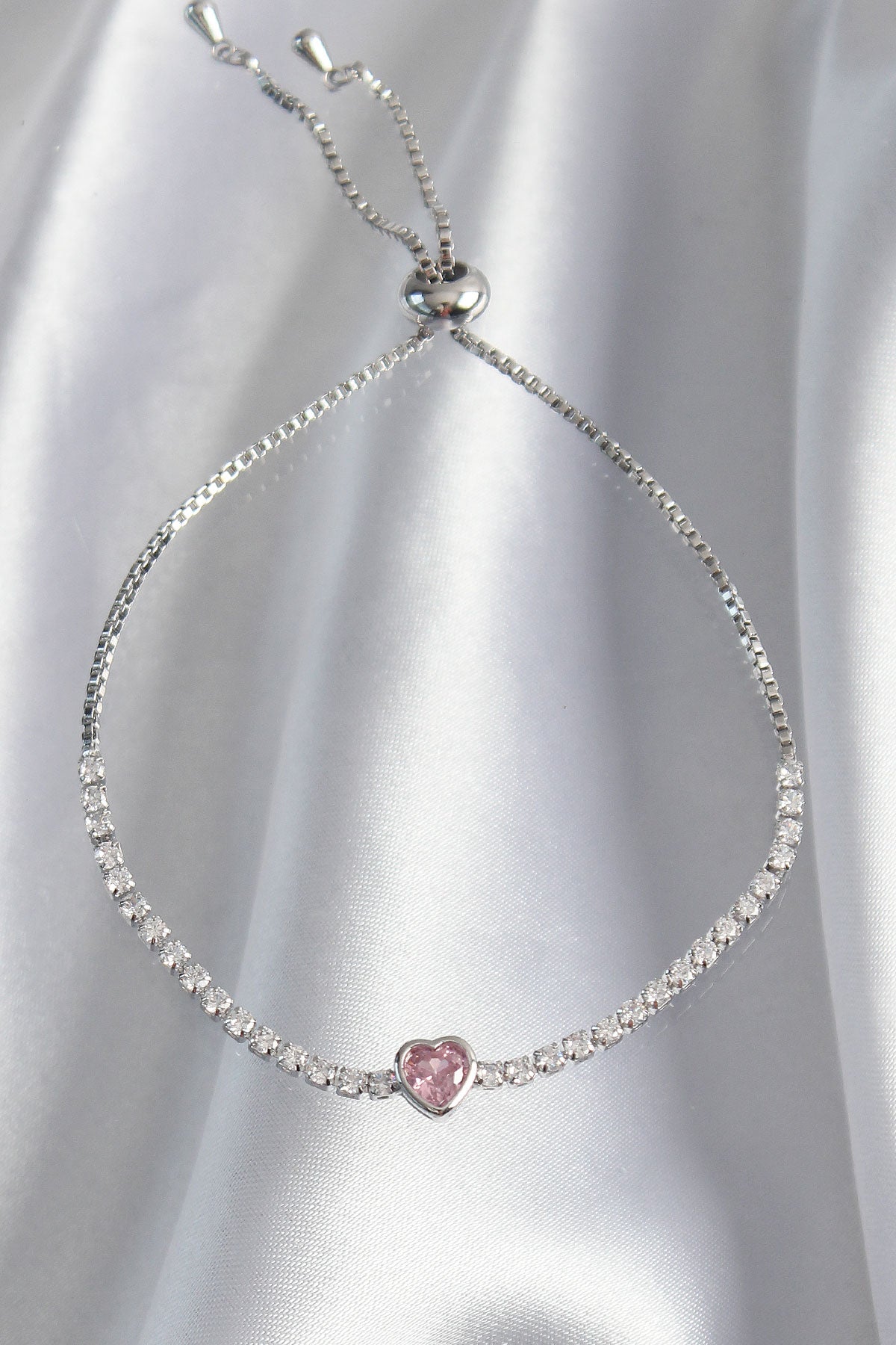 EBJ Rice Silver Color Pink Zircon Stone Charm Model Elevator Bracelet - Hanau