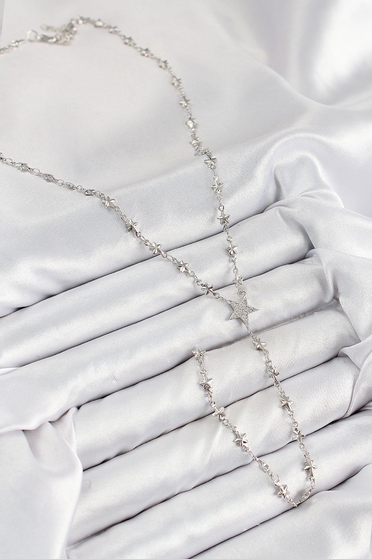 EBJ Rice Zircon Stone Star Model Silver Color Y Necklace - Moorpark