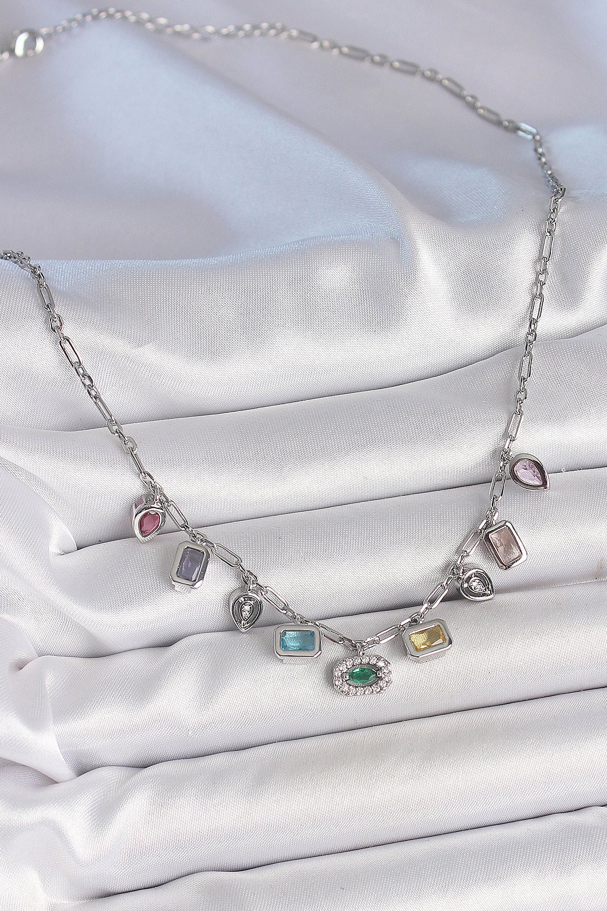 EBJ Silver Brass Necklace with Sequential Mixed Color Zircon Stones - Gorinchem