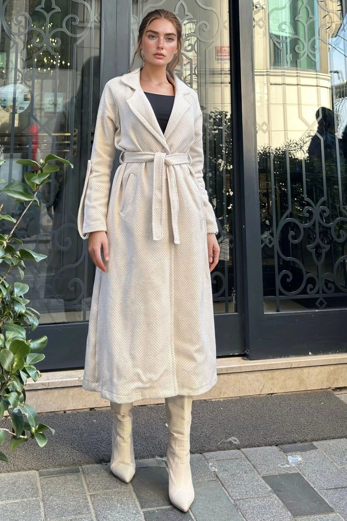 Ecru Belted Coat BCBSK-25700-3680 - Wood Buffalo
