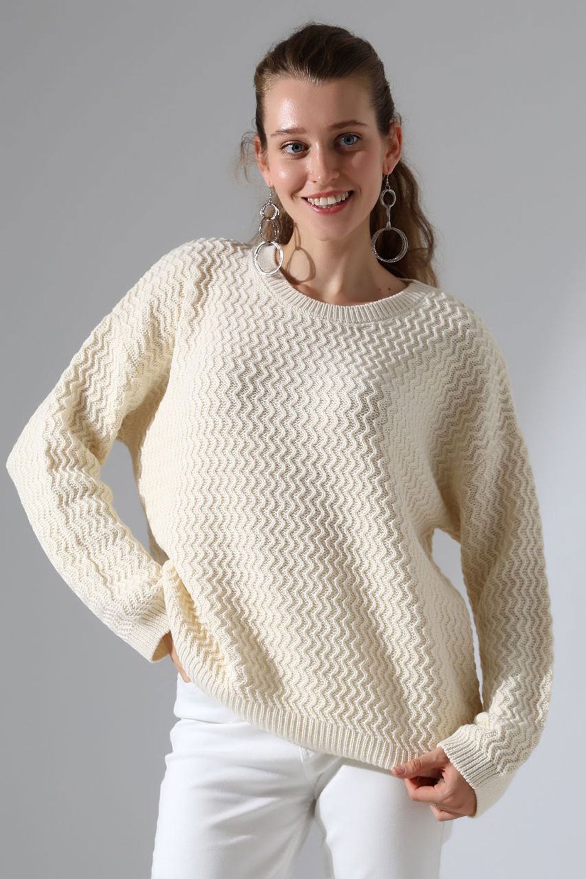 Ecru Bicycle Neck Waterway Patterned Sweater BCES-252008 - Farnborough