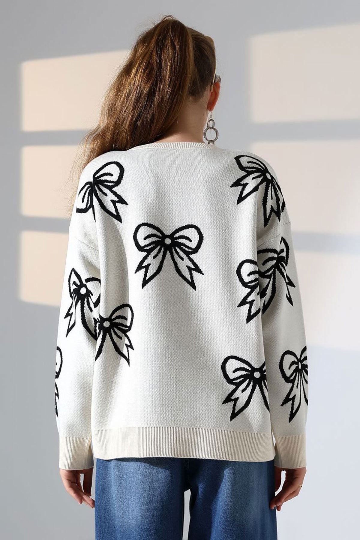 Ecru Bow Patterned Sweater BCES-252045 - Vallejo