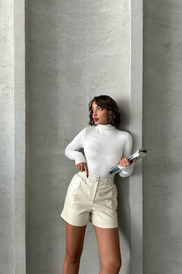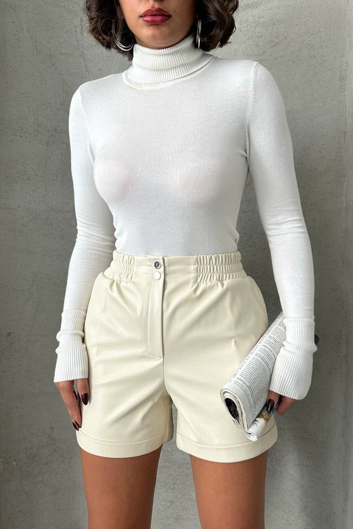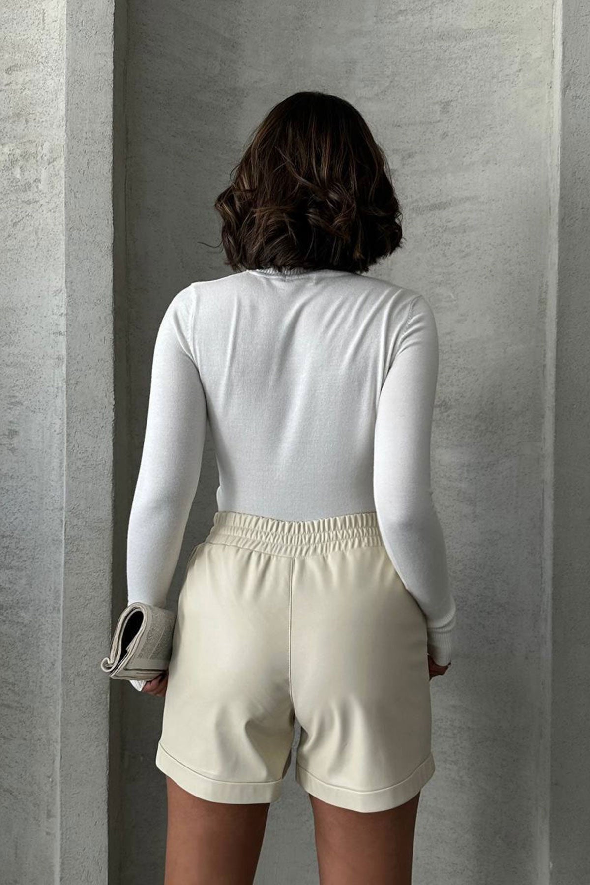 Ecru Elastic Waist Faux Leather Shorts BCHN-25261007 - Singen